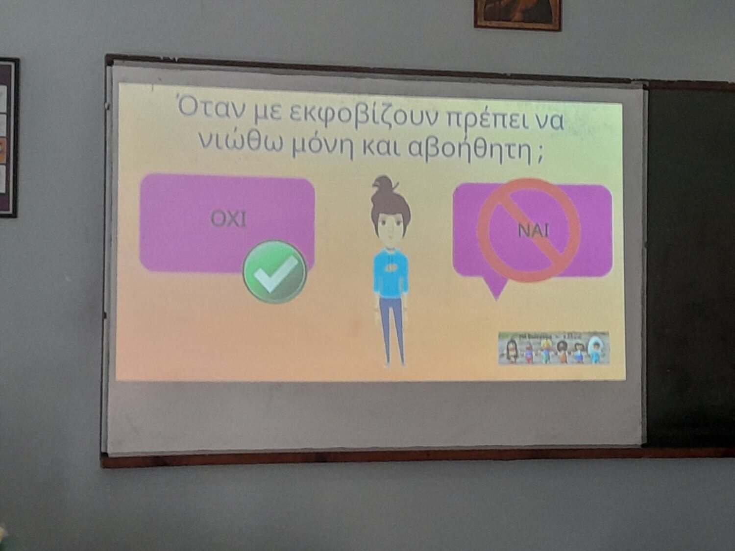 Στόχος των δράσεων ήταν η ενημέρωση, ευαισθητοποίηση και αντιμετώπιση του φαινομένου από όλα τα εμπλεκόμενα μέλη (μαθητές, εκπαιδευτικούς, γονείς).Οι δράσεις πραγματοποιήθηκαν με βιωματικό τρόπο χρησιμοποιώντας ως εργαλεία τη δημιουργική γραφή, το θεατρικό παιχνίδι και διαδραστικά εργαλεία ώστε να αναδυθούν οι θετικές στάσεις πρόληψης και αντιμετώπισης του Σχολικού Εκφοβισμού.