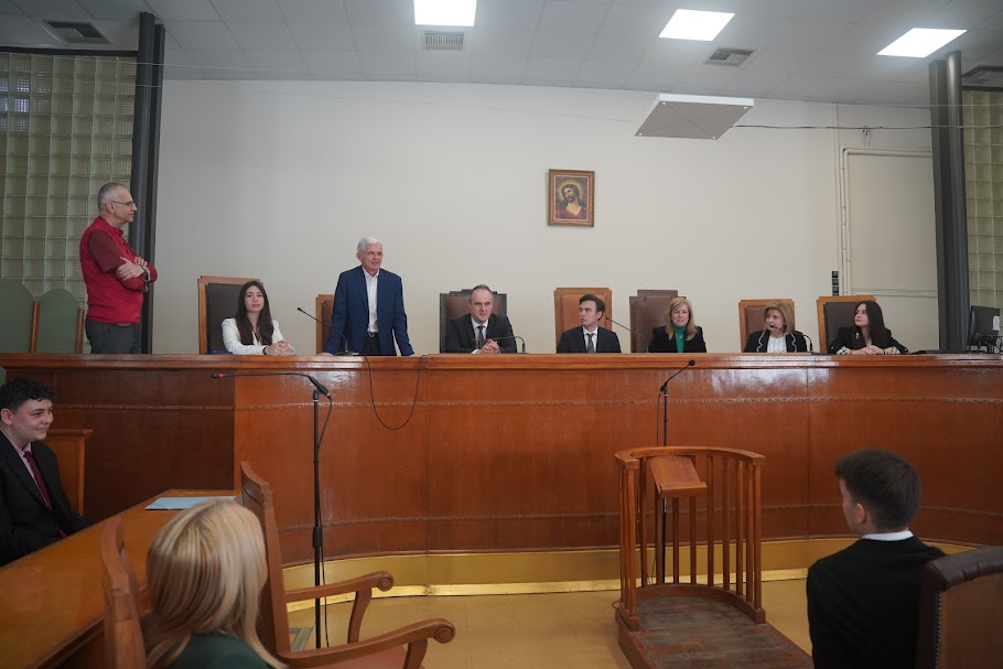 Tην Πέμπτη 5 Μαρτίου 2026 και ώρα 12:00 το μεσημέρι, στο Δικαστικό Μέγαρο Λάρισας, υλοποιήθηκε δράση βιωματικής μάθησης με θέμα την αναπαράσταση εικονικής δίκης, την οποία διοργάνωσε η Διεύθυνση Δευτεροβάθμιας Εκπαίδευσης Λάρισας, σε συνεργασία με τον Εισαγγελέα Εφετών Λάρισας κ. Λ. Τσόγκα και την Πρόεδρο Εφετών Λάρισας κ. Μ. Λιάνου, στο πλαίσιο των δράσεων για τον Σχολικό Επαγγελματικό Προσανατολισμό και της καλλιέργειας ενεργού πολιτειότητας.