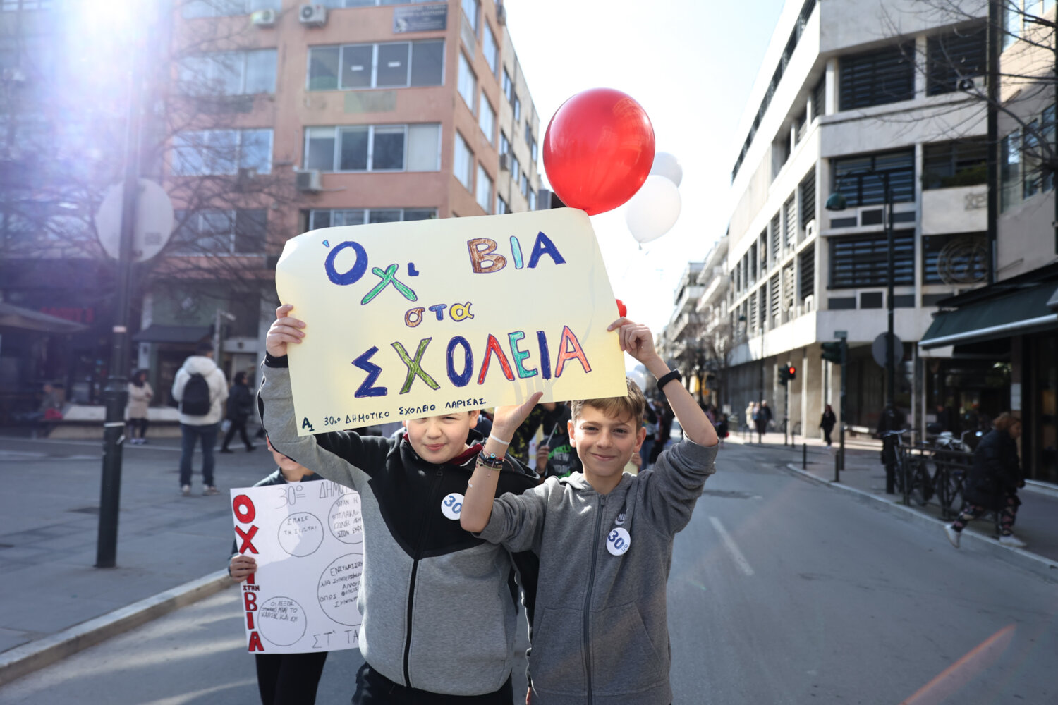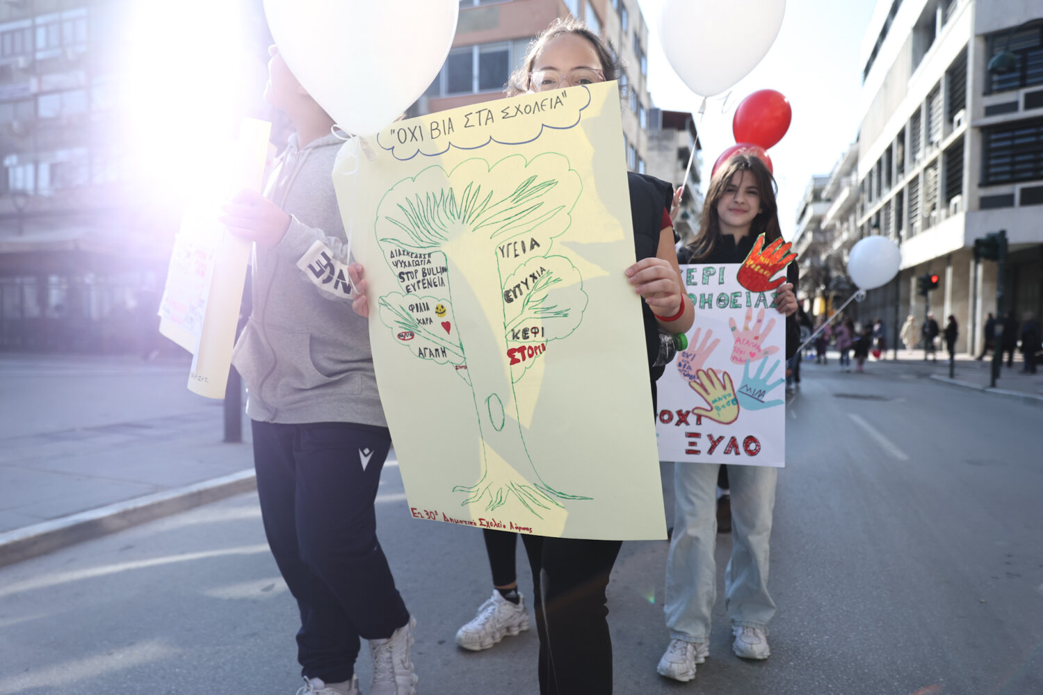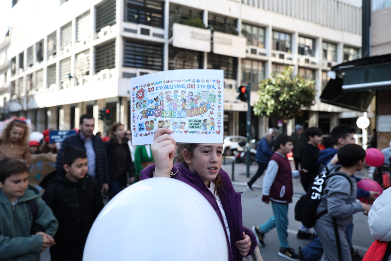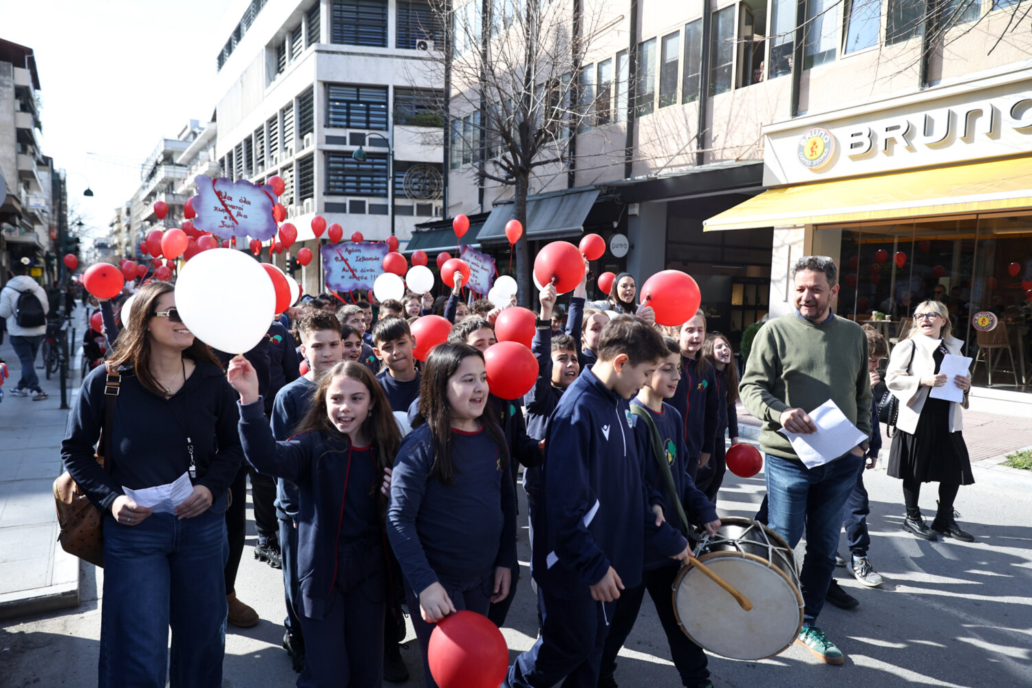 Το πρωί της Παρασκευής πλήθος μαθητών και μαθητριών από Δημοτικά Σχολεία και Νηπιαγωγεία της Λάρισας, συνοδεία εκπαιδευτικών και γονέων/κηδεμόνων- συγκεντρώθηκαν στην Πλατεία Νομαρχίας και κατευθύνθηκαν διά μέσου των οδών Παπαναστασίου, Κύπρου και Ασκληπιού, στην Πλατεία Εθνάρχου Μακαρίου (Ταχυδρομείου), όπου αυτήν την ώρα παρουσιάζουν δρώμενα, τραγούδια, ποιήματα και εικαστικά έργα, με θέμα τη φιλία, τη συμφιλίωση και την εξάλειψη της βίας.