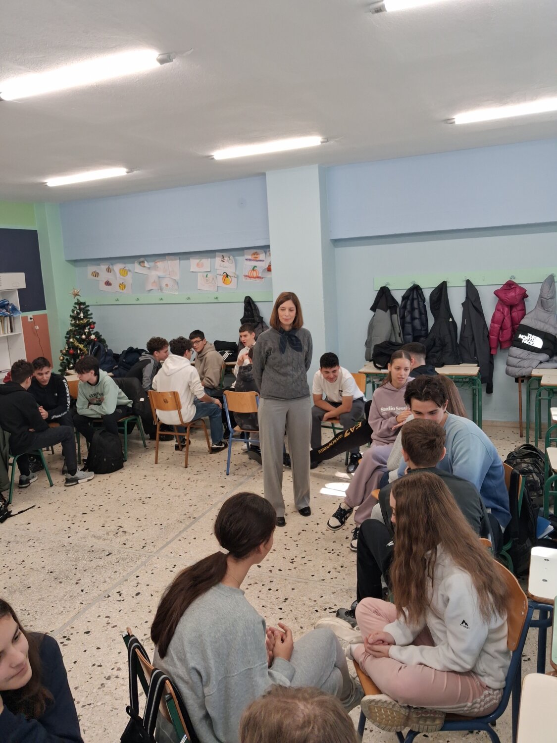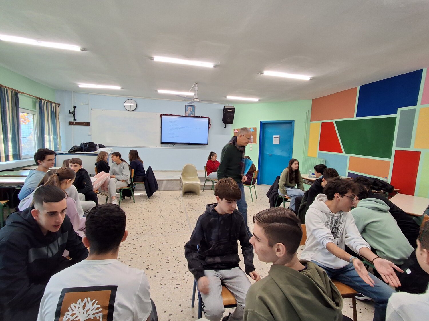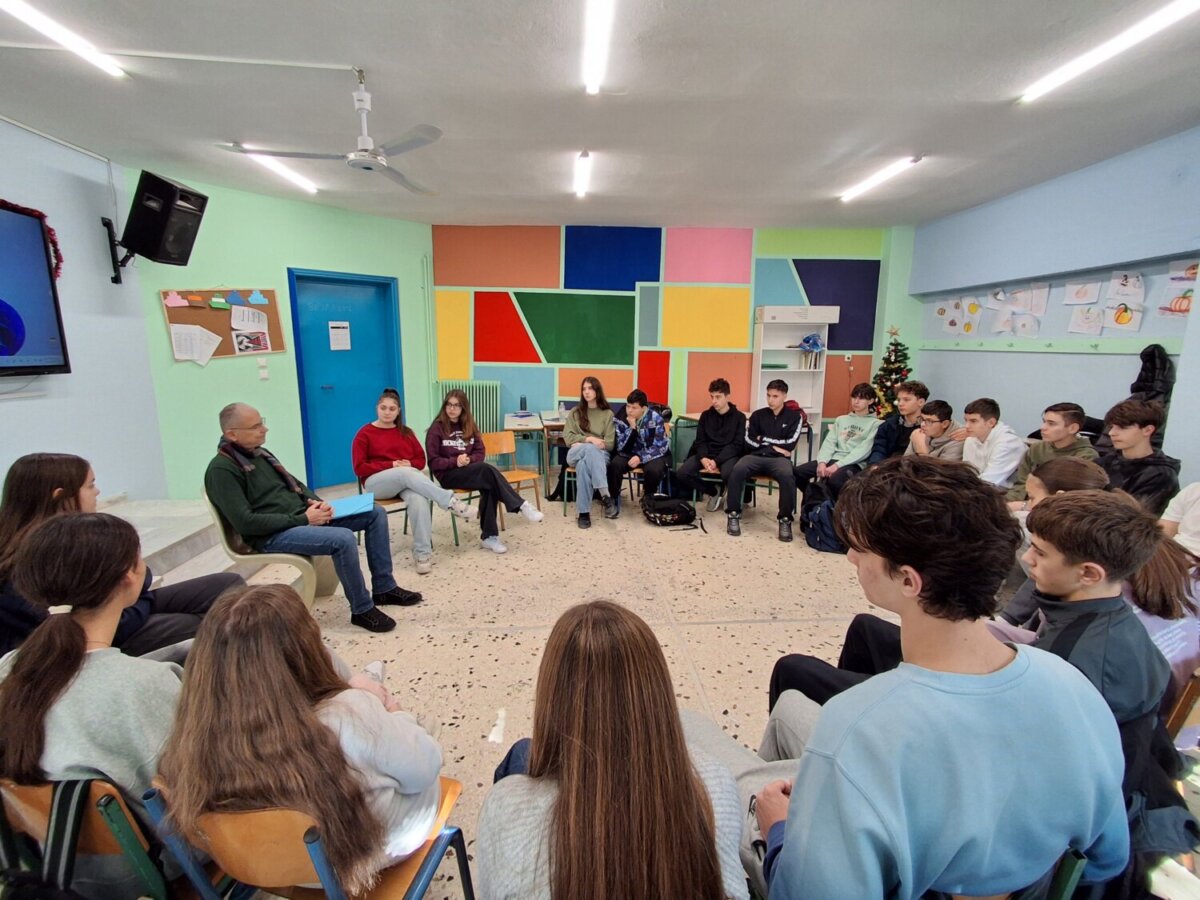 Στην πρώτη φάση του σχεδίου, οι μαθητές/τριες συμμετείχαν σε βιωματικό πρόγραμμα του Παραρτήματος Λάρισας του Εθνικού Οργανισμού Πρόληψης & Αντιμετώπισης των Εξαρτήσεων (Ε.Ο.Π.Α.Ε.). Ο υπεύθυνος του Κέντρου Πρόληψης και Εξαρτήσεων Λάρισας, κοινωνιολόγος κ. Χρήστος Πιτσίλκας, M.Ed.,μέσα από διαλογική συζήτηση, ανέλυσε την έννοια της ενεργητικής ακρόασης, τον ρόλο της ενσυναίσθησης και τη σημασία τους στην αποτελεσματική επικοινωνία. Για την καλύτερη κατανόηση των εννοιών, οι μαθητές/-τριες συμμετείχαν σε παιχνίδια ρόλων.