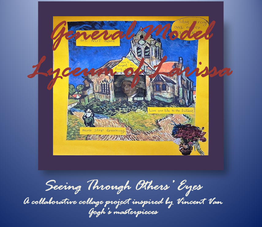 Κατά την τρίτη και τελευταία φάση του Project, οι μαθητές/τριες εργάστηκαν σε ομάδες πέντε ατόμων και, με τη βοήθεια φύλλου εργασίας, δημιούργησαν κολάζ με θέμα την κοινωνική δεξιότητα της ενσυναίσθησης, αντλώντας έμπνευση από έργα του σπουδαίου ζωγράφου Vincent van Gogh. Τα έργα των μαθητικών ομάδων παρουσιάζονται στην ψηφιακή έκθεση με τίτλο «Seeing Through Others’ Eyes», η οποία έχει αναρτηθεί στον ιστότοπο του σχολείου μας: https://lyk-prot-lar.lar.sch.gr.