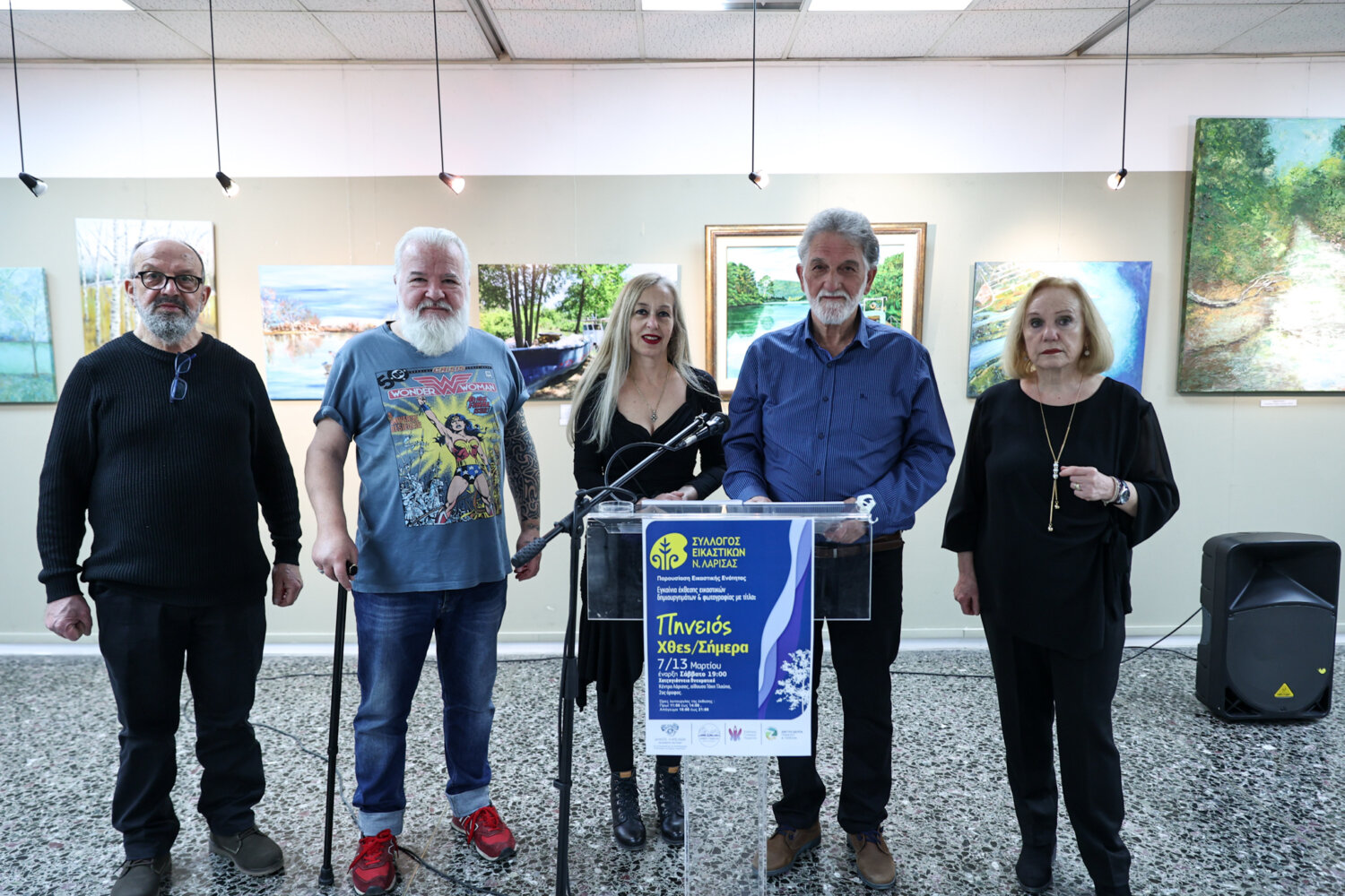 Με ιδιαίτερη επιτυχία πραγματοποιήθηκαν το βράδυ του Σαββάτου τα εγκαίνια της έκθεσης εικαστικών δημιουργημάτων και φωτογραφίας με θέμα «Πηνειός: Χθες – Σήμερα», στο Χατζηγιάννειο Πνευματικό Κέντρο Λάρισας, στην αίθουσα «Τάκης Τλούπας».