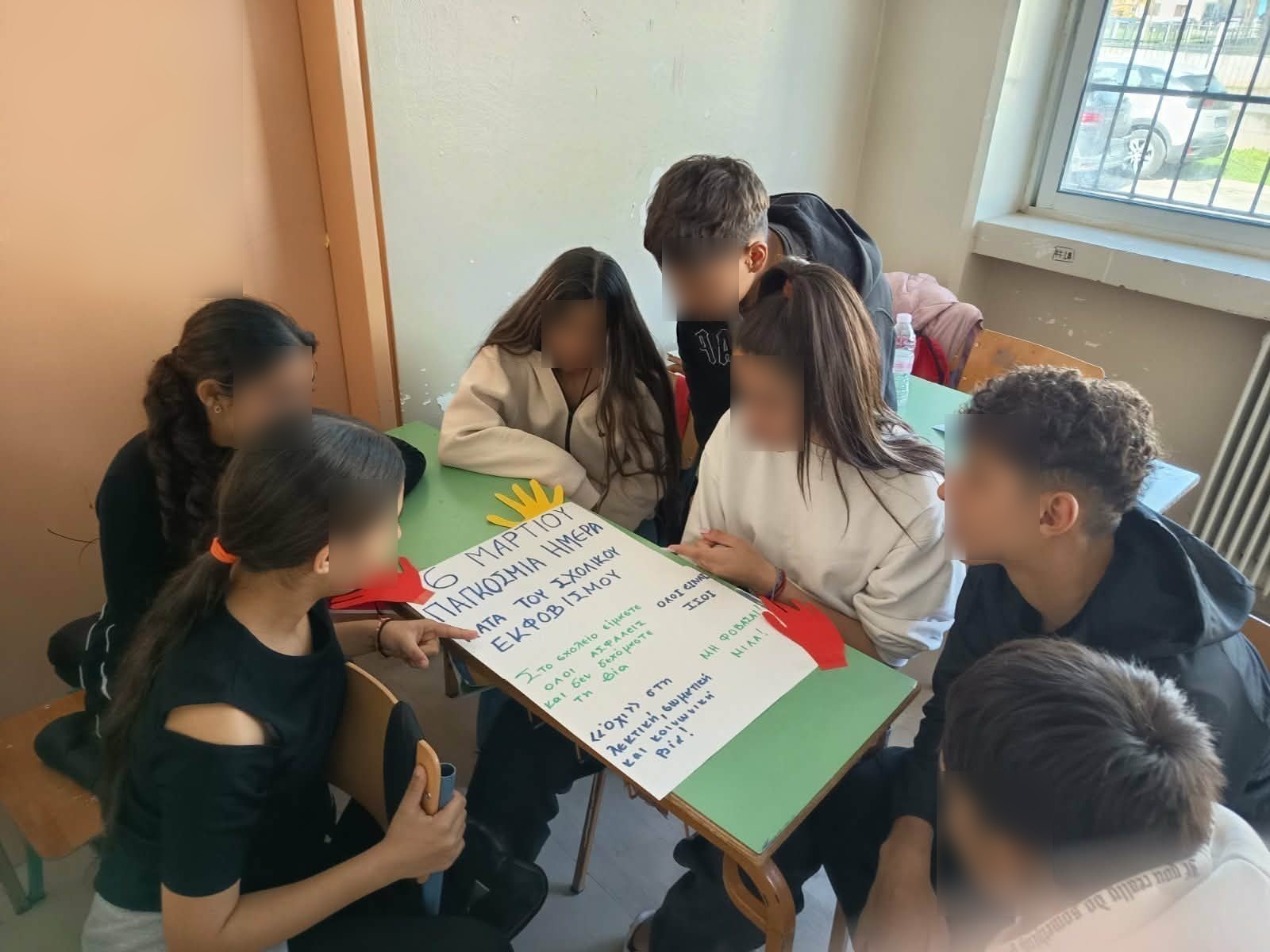 Δ/ Στο τμήμα του ΖΕΠ του Σχολείου μας με πρωτοβουλία της διδάσκουσας καθηγήτριας κ. Κωνσταντίνου Αλεξίας πραγματοποιήθηκε δράση εικαστικής δημιουργίας από τους μαθητές και τις μαθήτριες αναδεικνύοντας μηνύμαντα σημαντικά για την ημέρα στο θέμα της σχολικής καθημερινότητας και της αρμονικής συνύπαρξης των παιδιών.