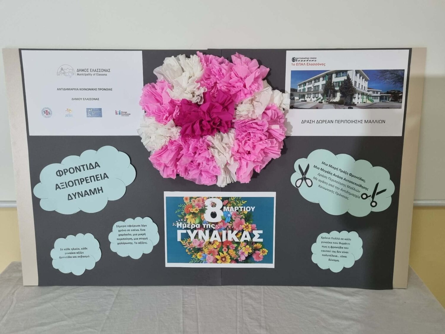 Με αφορμή την Παγκόσμια Ημέρα της Γυναίκας, η Αντιδημαρχία Κοινωνικής Πρόνοιας του Δήμου Ελασσόνας, σε συνεργασία με το Τμήμα Κομμωτικής Τέχνης του 1ου ΕΠΑΛ Ελασσόνας, υλοποίησε δράση φροντίδας και περιποίησης αφιερωμένη στις γυναίκες της τρίτης ηλικίας.