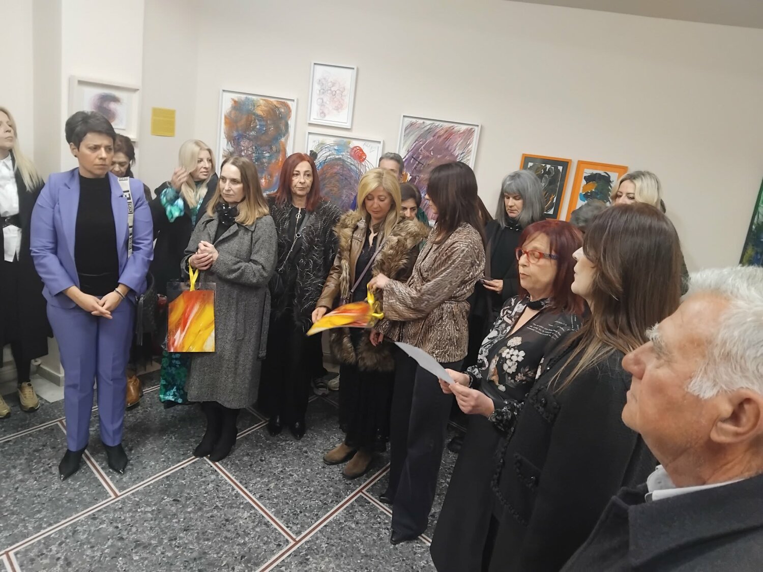 Ο Σύλλογος Γυναικών Τυρνάβου, σε συνεργασία με την BRAGGART Gallery Shop, εγκαινίασε το απόγευμα της Κυριακής την αναδρομική έκθεση της εικαστικού Ελένης Γάτσιου (1997-2024) με τίτλο «Αποτυπώματα», στο Φουαγιέ του Δημαρχείου Τυρνάβου, με αφορμή την Ημέρα της Γυναίκας.
