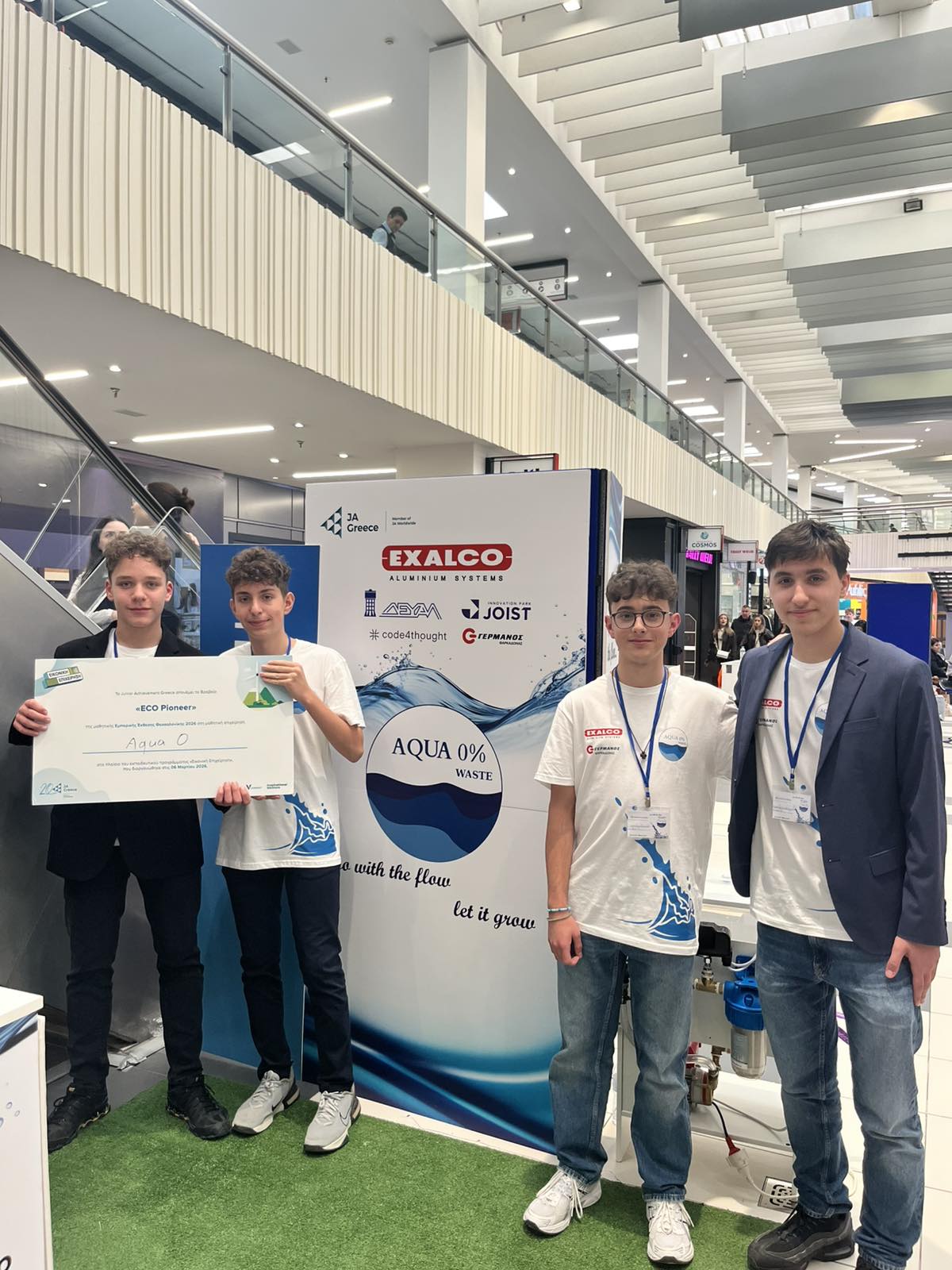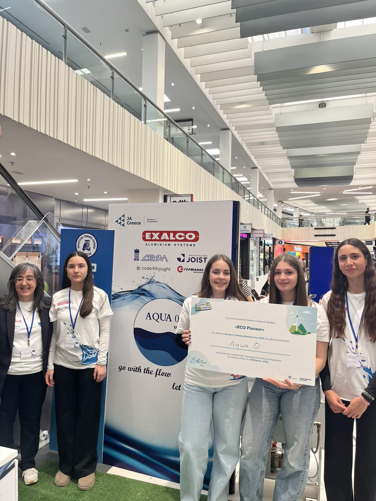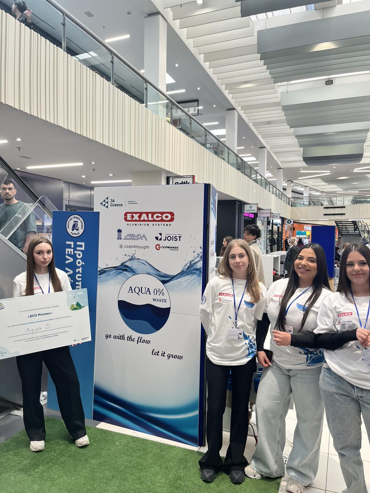 Το βραβείο της οικολογικής πρωτοπορίας “ECO Pioneer 2026” απέσπασε η καινοτόμος επιχειρηματική πρόταση “Aqua 0, Zero Waste” του Προτύπου Γενικού Λυκείου Λάρισας στον διαγωνισμό για την ανάδειξη των καλυτέρων μαθητικών «εικονικών επιχειρήσεων» από το Oργανισμό εκπαίδευσης και επιχειρηματικότητας “Junior Achievement Greece” (J.A. Greece). Η επιχειρηματική πρόταση παρουσιάσθηκε στην Εμπορική Μαθητική Έκθεση της Θεσσαλονίκης την περασμένη Παρασκευή, στην οποία συμμετείχαν σαράντα οκτώ (48) μαθητικές εικονικές επιχειρήσεις από Βόρεια Ελλάδα και Θεσσαλία και πραγματοποιήθηκε στις εγκαταστάσεις του «Mediterranean Cosmos». Mέγας χορηγός και σ΄ αυτή την προσπάθεια του σχολείου η γνωστή Λαρισινή βιομηχανία Αλουμινίου «Exalco A.E.».