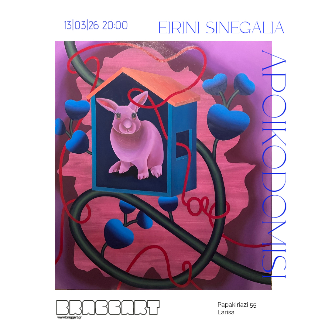 Η γκαλερί σύγχρονης τέχνης Braggart παρουσιάζει την δεύτερη ατομική έκθεση της εικαστικού Ειρήνης Σινεγάλια, με τίτλο «Αποικοδόμηση» από τις 13 Μαρτίου-11 Απριλίου 2026, στο art box Παπακυριαζή 55 & Σκαρλάτου Σούτσου στη Λάρισα. Τα εγκαίνια της έκθεσης θα γίνουν Παρασκευή 13 Μαρτίου στις 20:00.