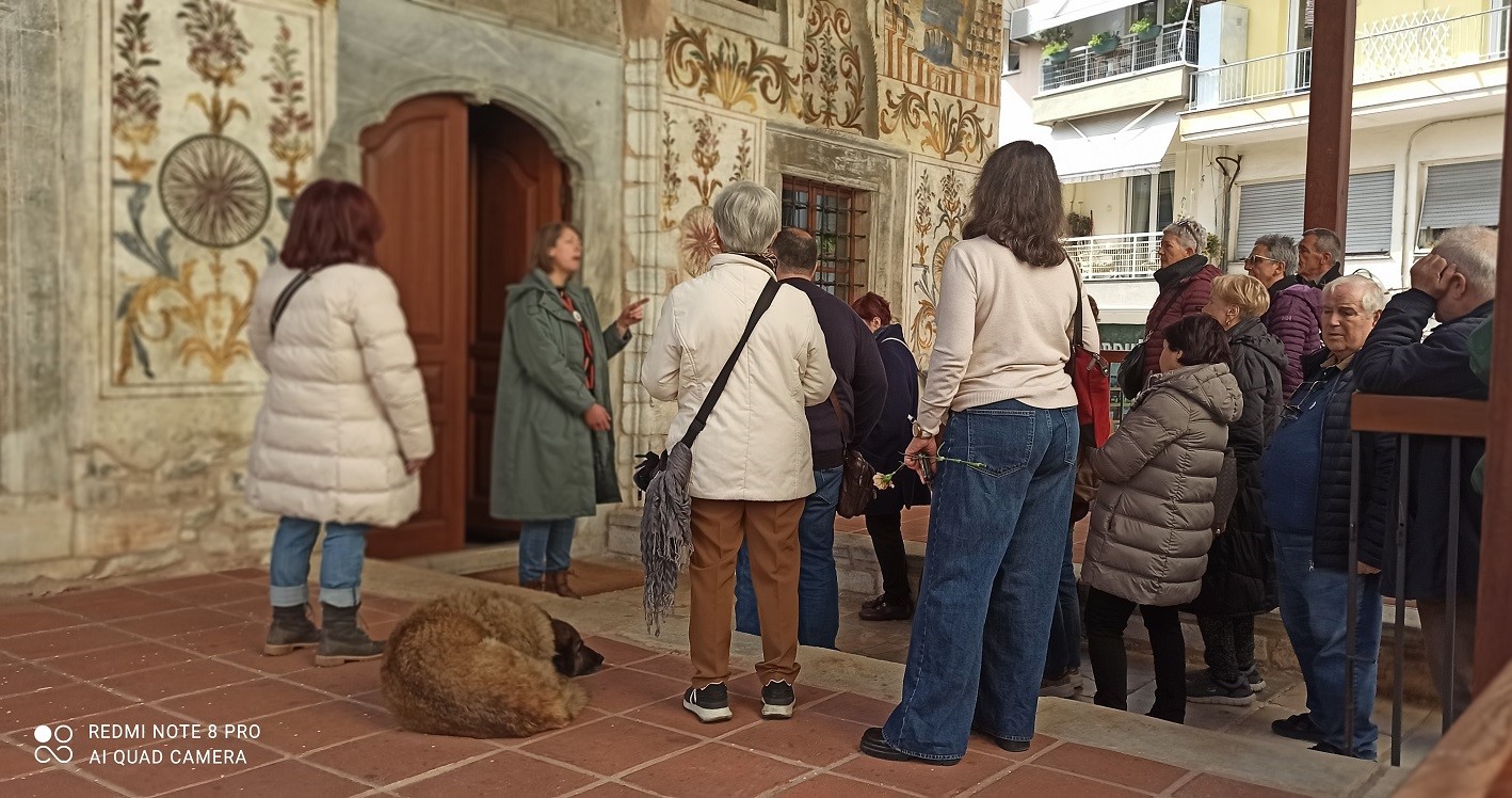 Το πρωί της Κυριακής 8 Μαρτίου, Ημέρα της Γυναίκας, προσφέρθηκαν από τον Σύλλογο γαρύφαλλα στις Κυρίες που συμμετείχαν στην εξόρμηση. Στο μνημείο Σαντιρβάν, είδαμε ένα οθωμανικό τέμενος του 16ου αι., ένα παλίμψηστο της νεότερης ιστορίας της Δράμας, όπου μετά την Μικρασιατική καταστροφή έγινε καταφύγιο για πολλές οικογένειες προσφύγων. Από το 1927 και για 60 έτη στέγασε την ιστορική εφημερίδα «Θάρρος», την μακροβιότερη εφημερίδα της Ανατ. Μακεδονίας. Σήμερα φιλοξενείται Έκθεση Παιχνιδιών του Μουσείου Μπενάκη.