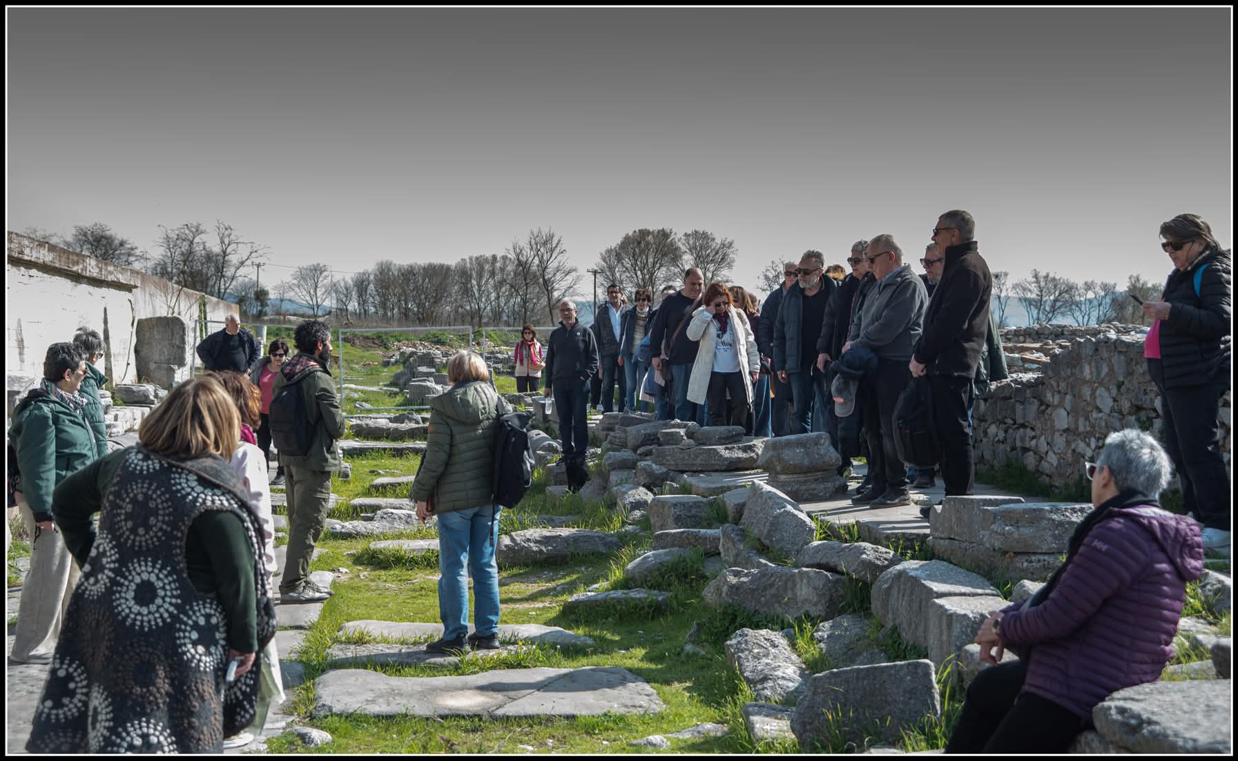 «Μέλη και Φίλοι του Συλλόγου Φίλων Διαχρονικού Μουσείου Λάρισας επισκεφθήκαμε τον αρχαιολογικό χώρο και το Μουσείο της Αμφίπολης, το Αρχαιολογικό Μουσείο και μνημεία της Δράμας, τους αρχαίους Φιλίππους, το Σάββατο 7 έως την Κυριακή 8 Μαρτίου 2026. Το ηλιόλουστο πρωινό του Σαββάτου η κα Δημητρία Μαλαμίδου, Έφορος Αρχαιοτήτων Σερρών, μας υποδέχθηκε στον αίθριο χώρο του Αρχαιολογικού Μουσείου της Αμφίπολης, όπου μας εξιστόρησε τα σχετικά με την ίδρυση της αρχαίας Αμφίπολης από τους Αθηναίους, υπό τον Άγνωνα, ο οποίος οχύρωσε την πόλη με μακρό τείχος, κατά μήκος του ποταμού Στρυμόνα, που την περιρρέει και γι’ αυτό την ονόμασε «Αμφίπολη». Τα δραματικά γεγονότα του Πελοποννησιακού πολέμου το 424 π. Χ., την κατάληψη της πόλης, δύο έτη μετά, από τον Λακεδαιμόνιο στρατηγό Βρασίδα, τον θάνατο αυτού και την ταφή του ως «ήρωα» μέσα στην πόλη, δίπλα στο τείχος. Την υποταγή της πόλης στον Φίλιππο Β΄ και στους Μακεδόνες και μετέπειτα στους Ρωμαίους.