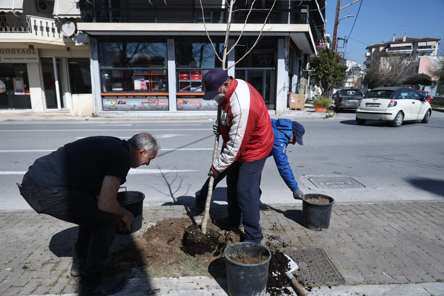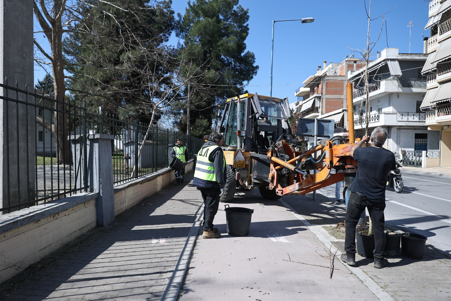 Εργασίες δενδροφυτεύσεων πραγματοποιούν από το πρωί της Πέμπτης συνεργεία του Δήμου Λαρισαίων στην οδό Ιωαννίνων μπροστά από την είσοδο του στρατοπέδου «Ν. Πλαστήρια». Στο σημείο βρέθηκαν λίγο μετά τις 11 το πρωί και ο Δήμαρχος Λαρισαίων, Θανάσης Μαμάκος, μαζί με τον Αντιδήμαρχο Πρασίνου, Βάιο Κυριτσάκα, τον Αντιδήμαρχο Τεχνικών Υπηρεσιών, Χρήστο Τερζούδη και τον αντιπρόεδρο της ΔΕΥΑΛ, Κωνσταντίνο Καλόγηρο.