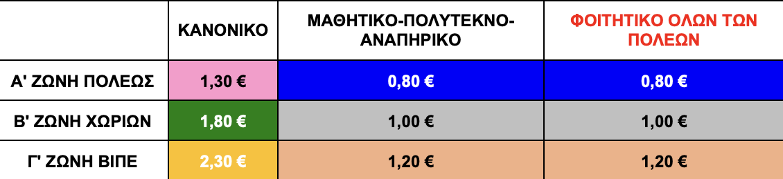 Με τις νέες τιμές εισιτηρίων να διαμορφώνονται ως εξής:
