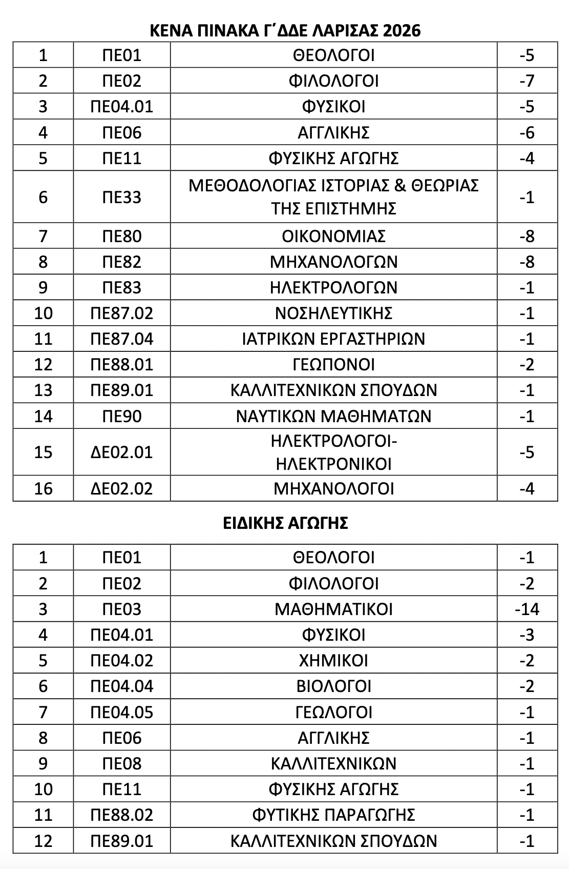 Στο πλαίσιο της ενημέρωσης από τη ΔΑΚΕ Καθηγητών Ν. Λάρισας, για θέματα ΠΥΣΔΕ, «προωθείται ο πίνακας των οργανικών κενών-πλεονασμάτων Καθηγητών Δ. Ε. του Ν. Λάρισας.
