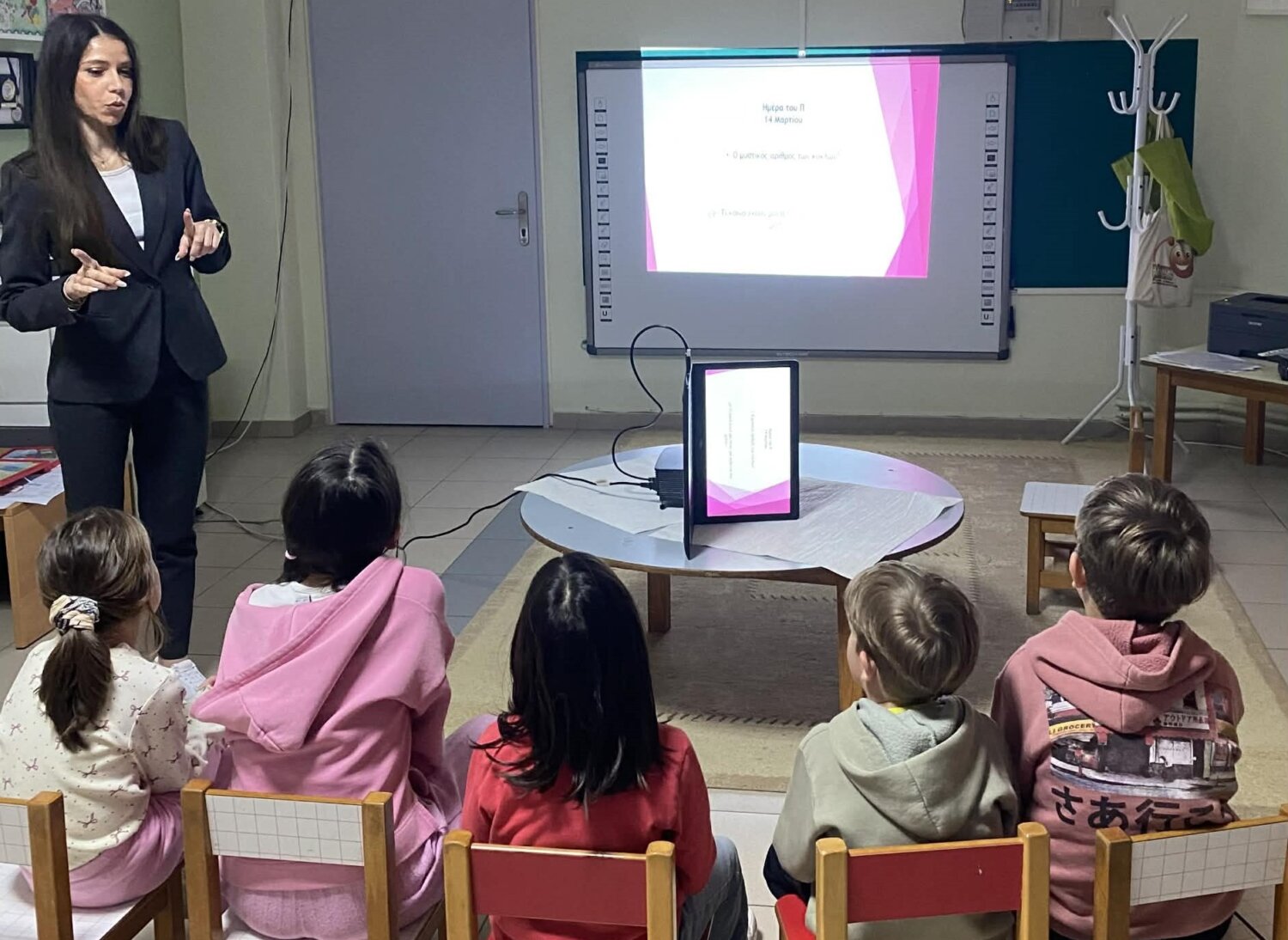 Στο πλαίσιο των δράσεων, οι μαθηματικοί της Ελληνικής Μαθηματικής Εταιρείας κ. Κωνσταντίνος Κοθώνας και κ. Έλλη Στεργίου παρουσίασαν στα παιδιά με απλό και κατανοητό τρόπο τι συμβολίζει ο αριθμός «π» και γιατί θεωρείται τόσο σημαντικός για την επιστήμη. Μέσα από ειδικές προβολές, διαδραστικές ασκήσεις και βιωματικές δραστηριότητες, οι μαθητές είχαν την ευκαιρία να ανακαλύψουν βασικές έννοιες των μαθηματικών με έναν ευχάριστο και δημιουργικό τρόπο.