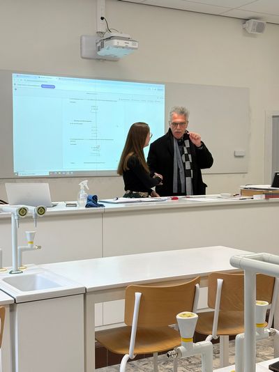 Κατά τη διάρκεια της εβδομάδας, ο κ. Ρεμπάπης δίδαξε Μαθηματικά μέσα από καινοτόμες δραστηριότητες που συνέδεαν τη θεωρία με την καθημερινή εμπειρία των μαθητών. Στο σχολικό χώρο πραγματοποιήθηκαν βιωματικές ασκήσεις μέτρησης, όπου οι μαθητές υπολόγισαν εμβαδά, περιμέτρους και αποστάσεις, εφαρμόζοντας μαθηματικές έννοιες σε πραγματικούς χώρους. Παράλληλα υλοποιήθηκαν δραστηριότητες στατιστικής με σχεδιασμό ερωτηματολογίων, συλλογή δεδομένων και ανάλυση τους μέσω ποσοστών και γραφημάτων.
