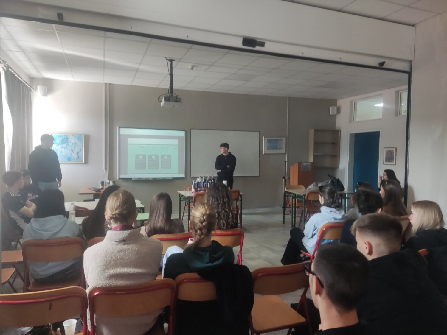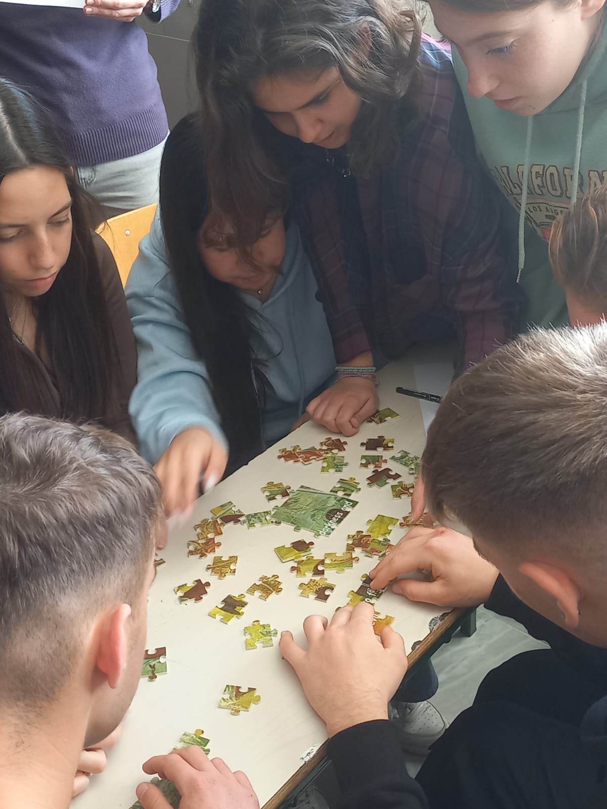 «Κατά τη διάρκεια της παραμονής τους στη Λάρισα, οι φιλοξενούμενοι μαθητές επισκέφθηκαν το σχολείο μας και συμμετείχαν σε μια σειρά από εκπαιδευτικές και πολιτιστικές δραστηριότητες. Στην αίθουσα πολλαπλών χρήσεων του σχολείου πραγματοποιήθηκαν δραστηριότητες γνωριμίας και συνεργασίας, μέσα από τις οποίες οι μαθητές των δύο χωρών είχαν την ευκαιρία να αλληλεπιδράσουν, να ανταλλάξουν εμπειρίες και να δημιουργήσουν ένα φιλικό κλίμα επικοινωνίας. Ιδιαίτερο ενδιαφέρον παρουσίασε ένα εκπαιδευτικό παιχνίδι επίλυσης γρίφων που έφεραν μαζί τους οι Λετονοί μαθητές, στο οποίο συμμετείχαν όλοι οι μαθητές σε μικτές ομάδες, καλλιεργώντας την κριτική σκέψη, τη δημιουργικότητα και τη συνεργασία.