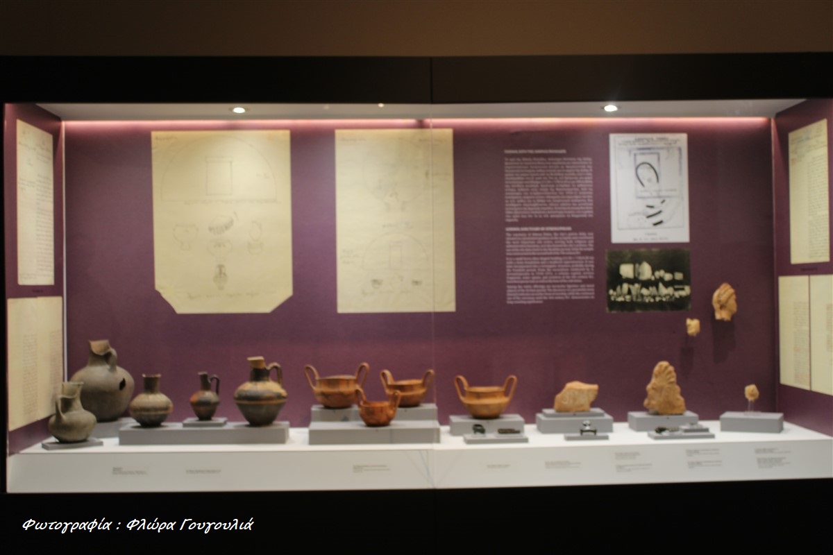 Εδώ τώρα έχουμε τα πρώτα δείγματα από την περιοχή, που μας έρχονται από το μουσείο της Αθήνας. Αυτά φυλάχτηκαν μαζί τότε με άλλες ανασκαφές του Αρβανιτόπουλου και χρειάστηκε πραγματικά να γίνουν ανασκαφές στα υπόγεια του μουσείου των Αθηνών, χάρη στις έρευνες της Μαρίας Σταματοπούλου. Οπότε έχουμε εδώ τμήματα από ακροκέραμα που προέρχονται από το ναό της Αθηνάς. Όλα αυτά είναι κλασικές αρχαιότητες από το 4ο μέχρι τον 6ο αιώνα π.Χ. Ο ίδιος ο ναός που είχε αυτό το πεταλόσχημο σχήμα χρονολογείτε από τον 4ο μέχρι τον 6ο αιώνα π.Χ. και παραδίπλα ήταν τα ίχνη των τειχών.