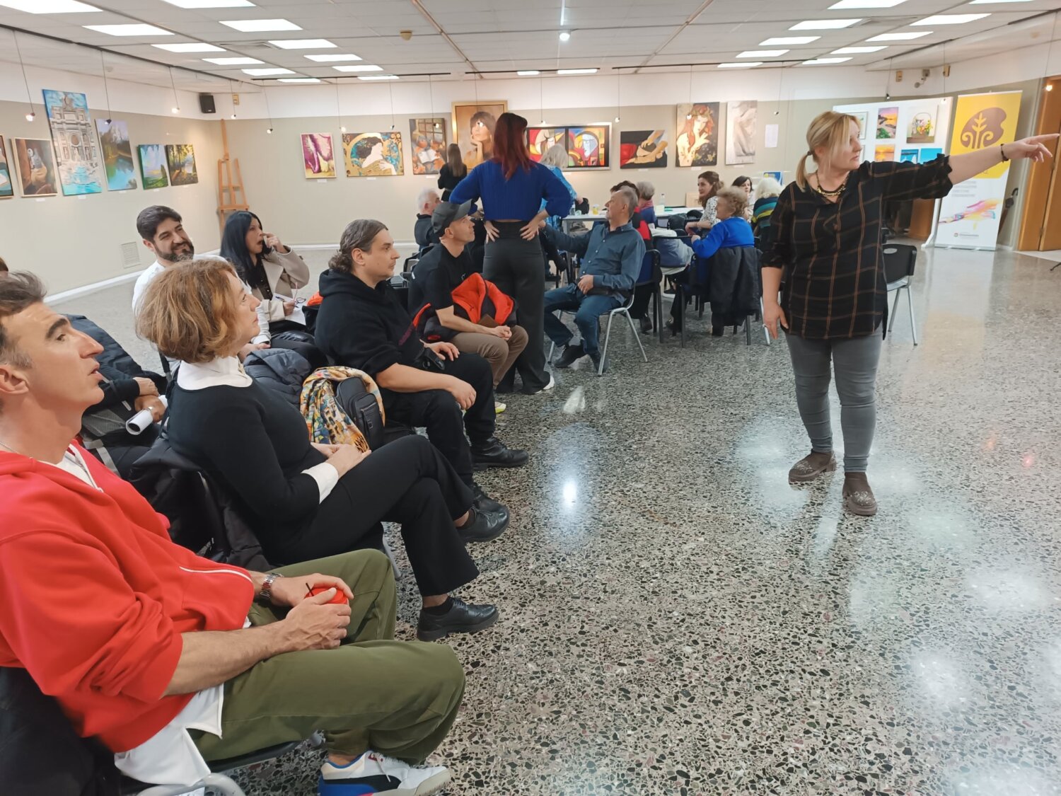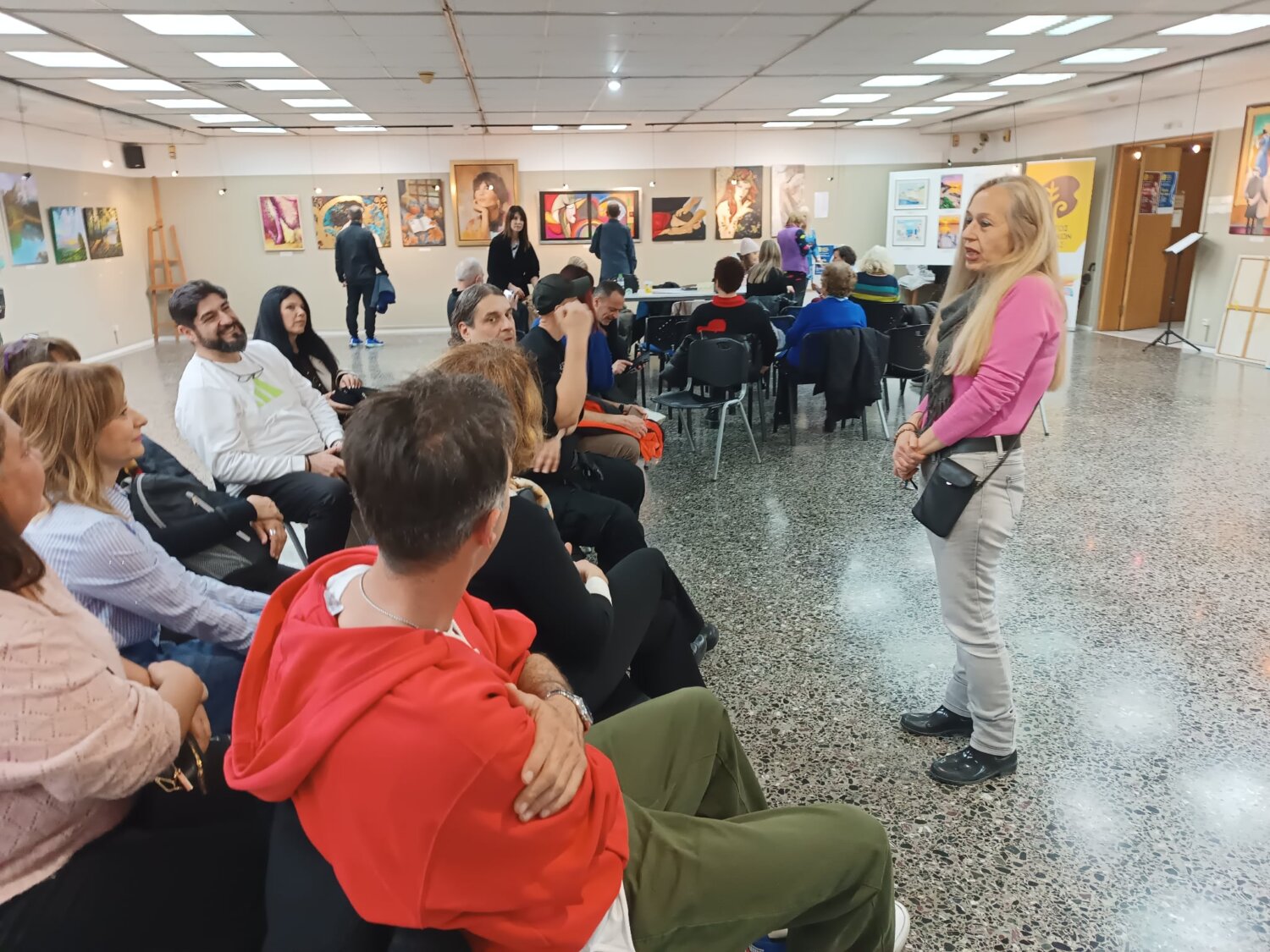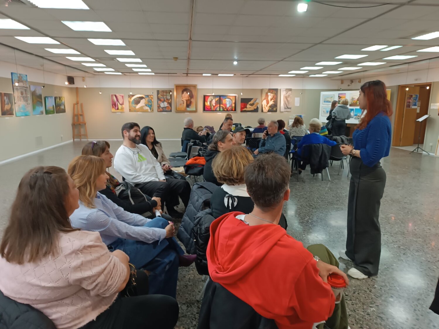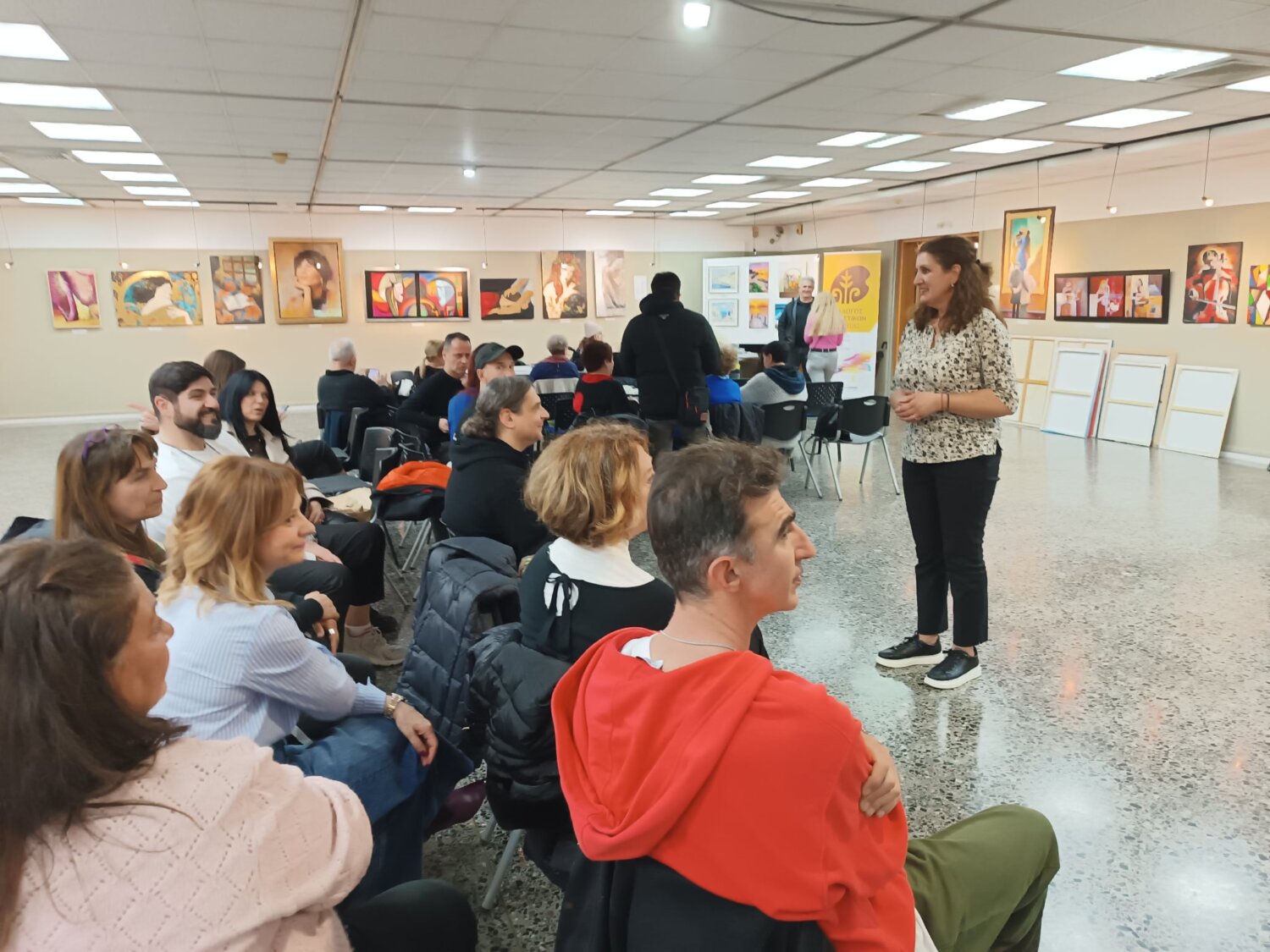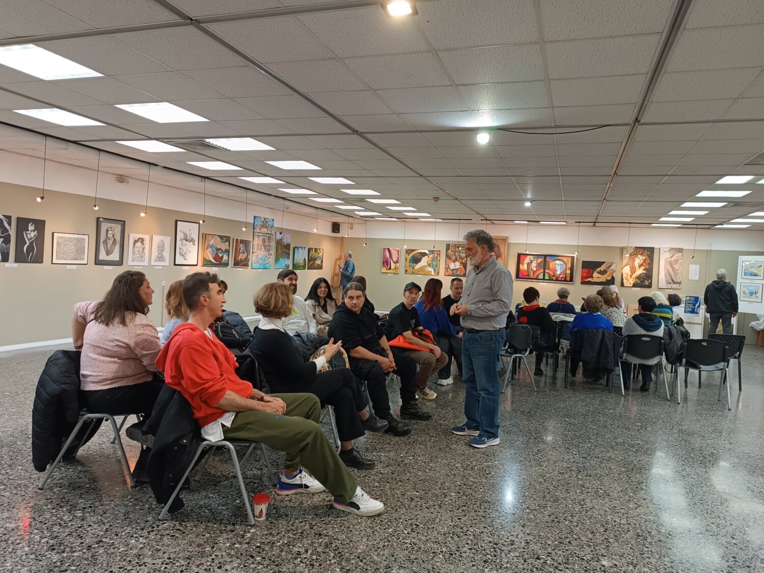 Τους μαθητές υποδέχθηκε ο πρόεδρος του Συλλόγου, κ. Γιάννης Γεωργιάδης, ο οποίος τους καλωσόρισε θερμά και τους παρουσίασε το γενικό πλαίσιο της έκθεσης, πραγματοποιώντας παράλληλα μια σύντομη αλλά ουσιαστική ξενάγηση στα έργα.