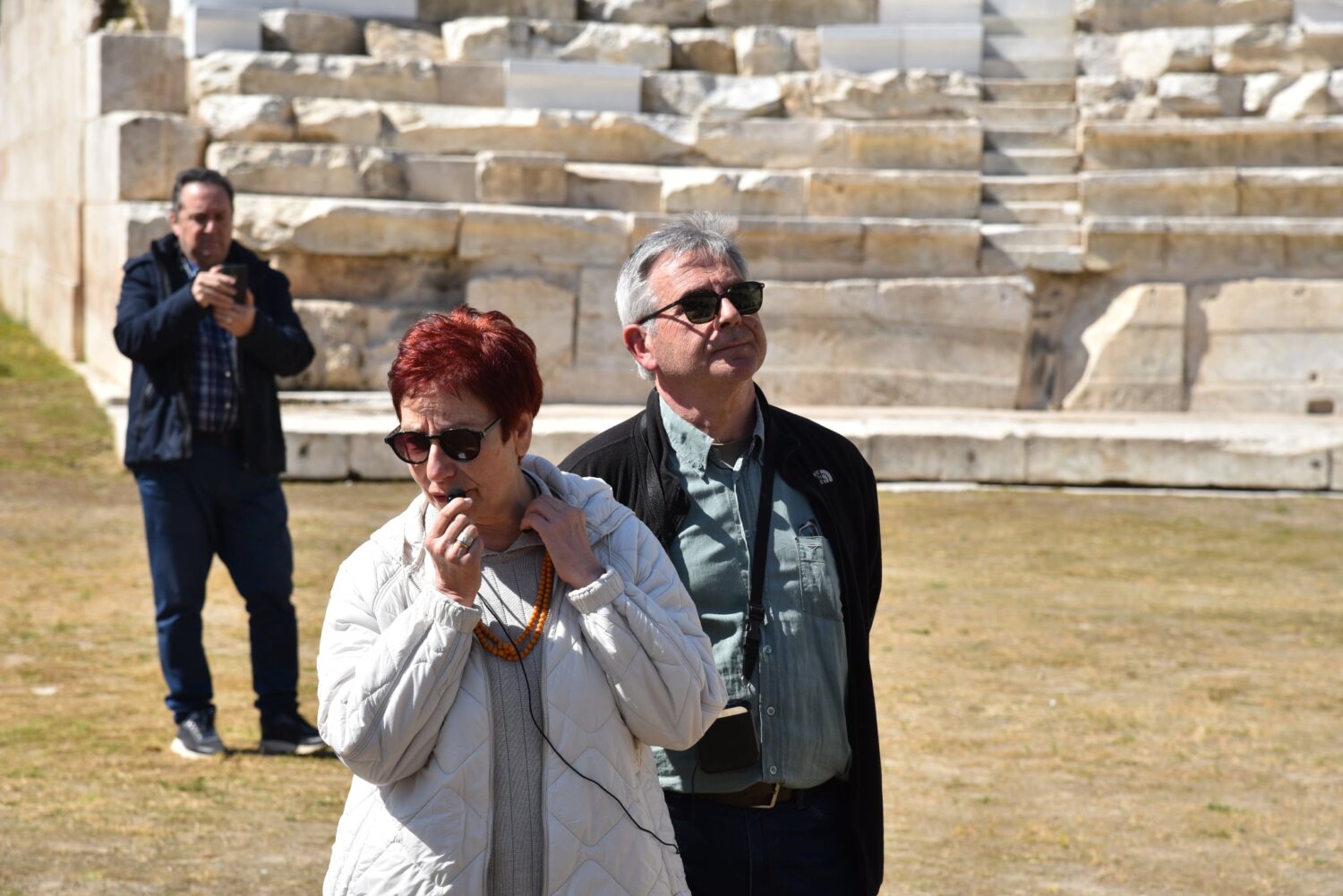 Η Ξενάγηση έγινε από τον αν.προϊστάμενο της Εφορείας Αρχαιοτήτων Λάρισας Γιώργο Τουφεξή, την αρχαιολόγο της Εφορείας Στυλιανή Κατακούτα και την πολιτικό μηχανικό Αικατερίνη Πλασταρά. Οι τρεις έδωσαν πολύ χρήσιμες πληροφορίες για το παρελθόν, το παρόν και το μέλλον του θεάτρου μας.