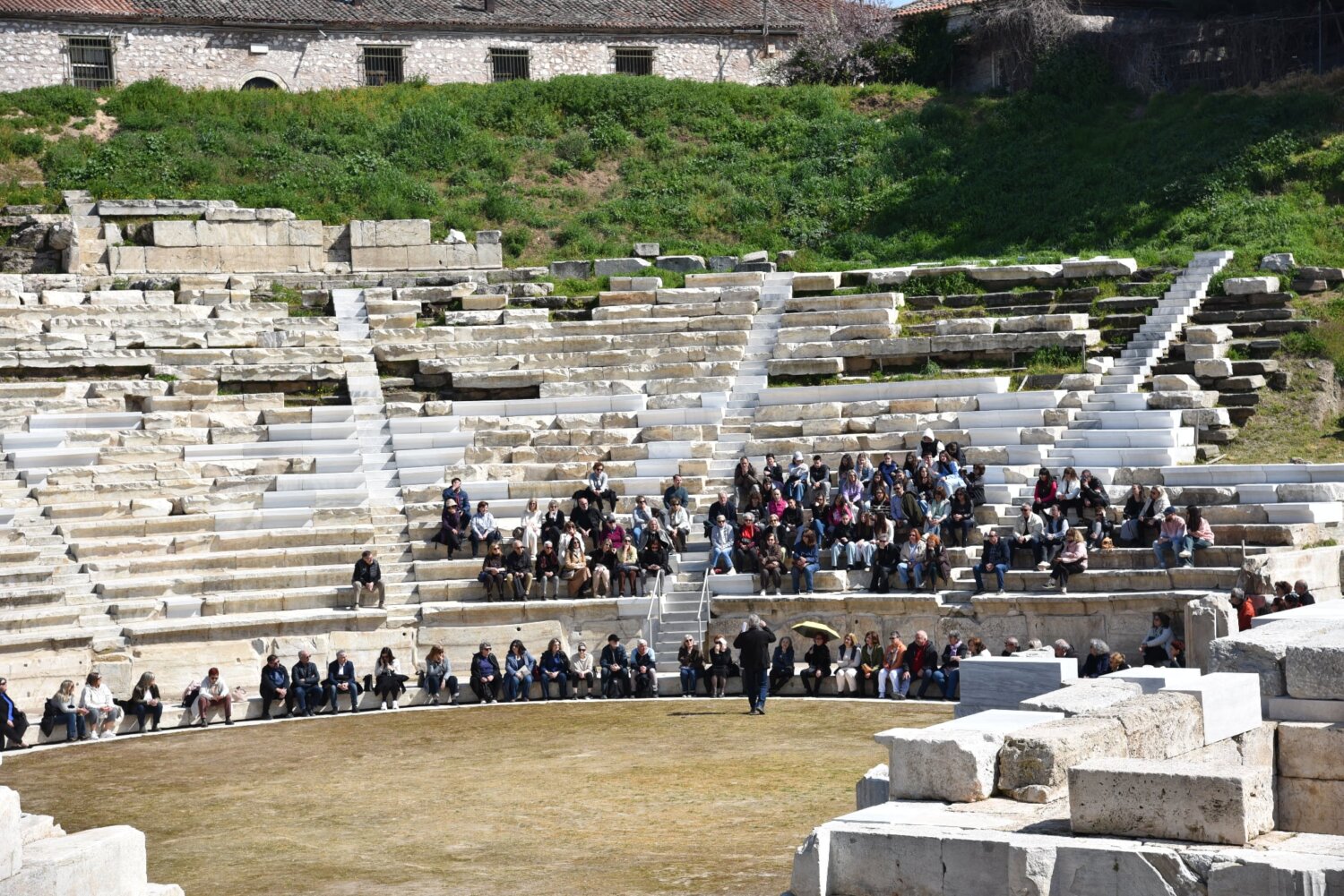 Ο περίπατος ολοκληρώθηκε στο πάνω μέρος του θεάτρου – πάνω από το επιθέατρο – που πρόσφερε μια σπάνια εικόνα της πόλης (φωτογραφίες του Π. Δομούζη).