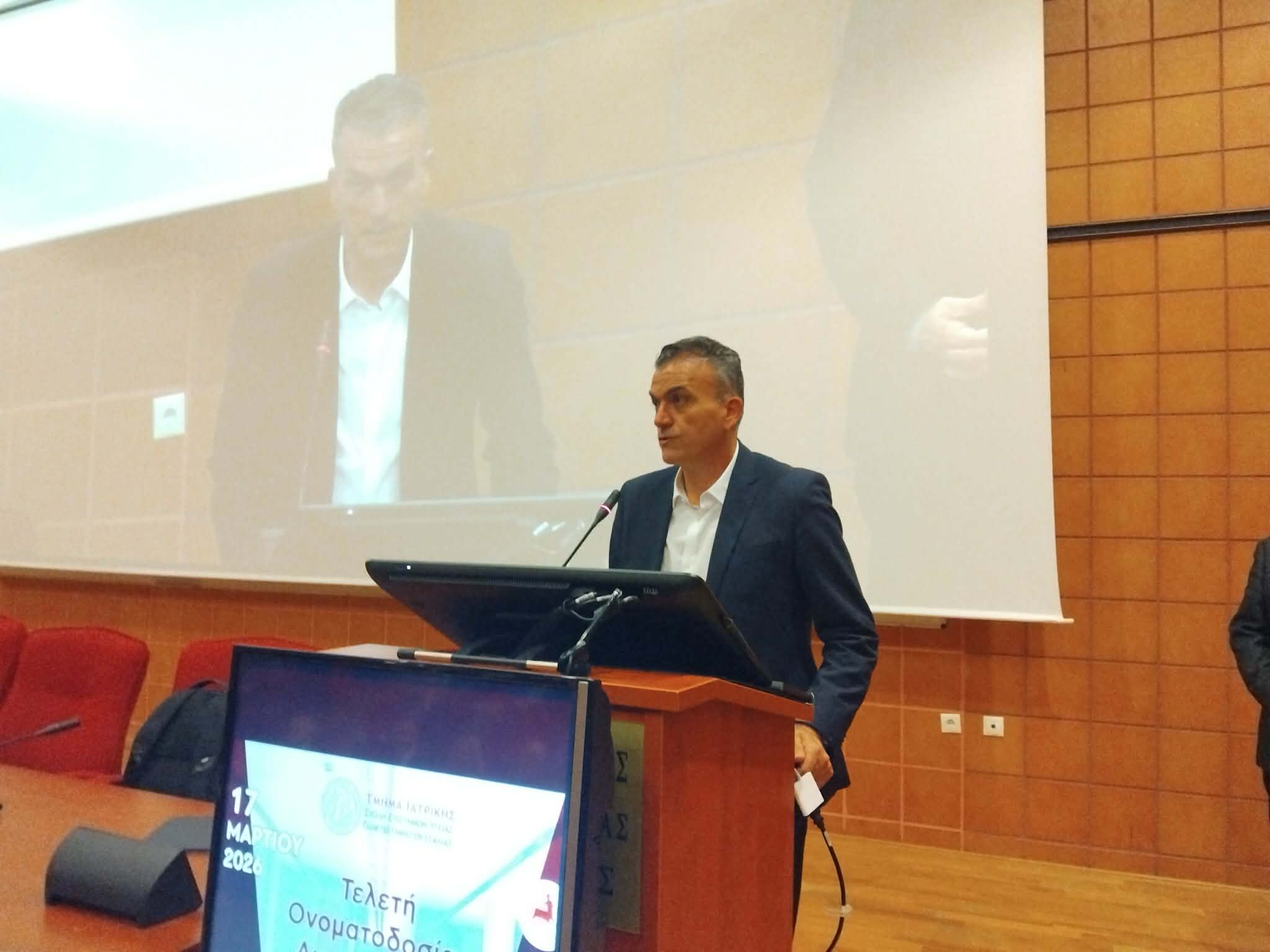 Σε μια συγκινητική εκδήλωση με έντονο συμβολισμό, το Τμήμα Ιατρικής του Πανεπιστήμιο Θεσσαλίας στη Λάρισα προχώρησε στην ονοματοδοσία δύο αμφιθεάτρων προς τιμήν των Γεώργιος Ι. Κατσίγρας και Δημήτριος Αθ. Παλιούρας, αναγνωρίζοντας τη διαχρονική προσφορά τους στην ιατρική και την κοινωνία.