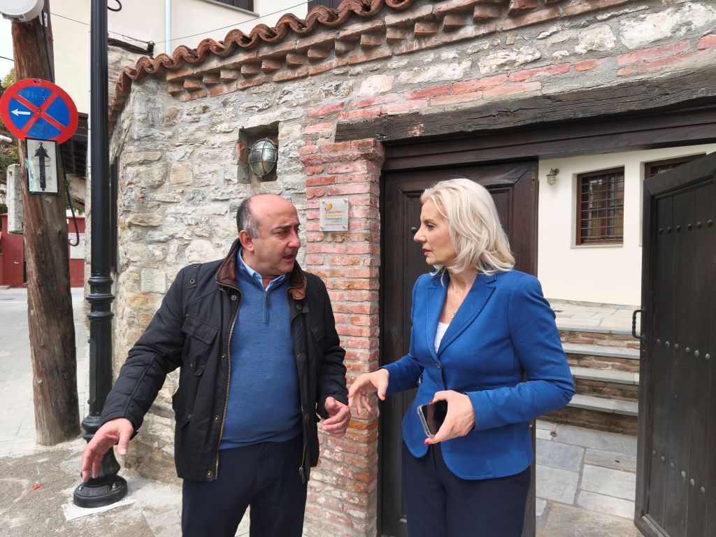 Εκεί, την ξενάγησε ο Δήμαρχος Τρικκαίων και πρόεδρος της ΠΕΔ Θεσσαλίας Νίκος Σακκάς, αναφέροντας ότι το παλιό αρχοντικό του 19ου αιώνα μεταμορφώθηκε