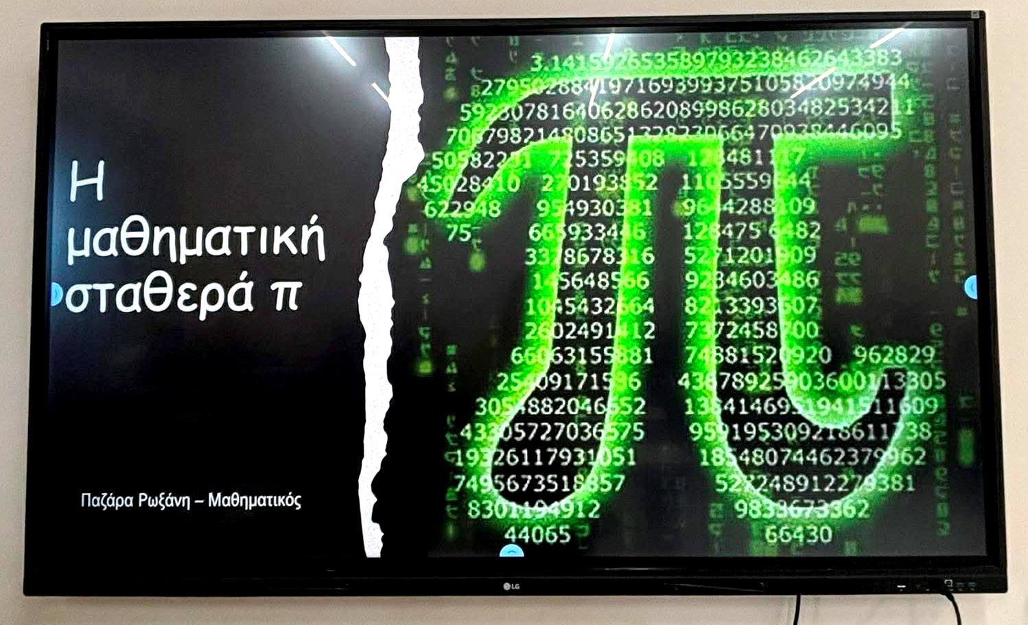 Ο αριθμός «π» – παγκόσμια ημέρα της μαθηματικής σταθεράς π, γιορτάστηκε στο ΕΠΑΛ Τυρνάβου, όπου οι μαθητές άφησαν για λίγο τα βιβλία και ανακάλυψαν τον πιο διάσημο αριθμό των Μαθηματικών, μέσα από τη δράση και τη δημιουργία. Ιδιαίτερο ενδιαφέρον είχαν τα βιωματικά εργαστήρια, όπου οι μαθητές συμμετείχαν ενεργά, μέσα από κατασκευές, αφίσες και διαγωνισμούς απομνημόνευσης δεκαδικών ψηφίων.