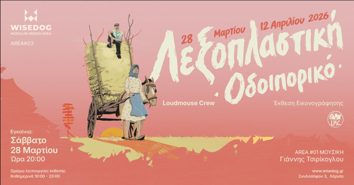 Η έκθεση, από τους Νίκο Τσικούρα, Ελένη Κυρατζή και Θάνο Κυρατζή (Loudmouse Crew), θα διαρκέσει έως τις 12 Απριλίου και συγκεντρώνει περισσότερες από 100 πρωτότυπες εικονογραφήσεις εμπνευσμένες από λέξεις και ιδιώματα της Λάρισας, του Θεσσαλικού κάμπου και της Κρήτης, συνθέτοντας ένα εικαστικό οδοιπορικό ανάμεσα στη γλώσσα, τη μνήμη και την εικόνα.