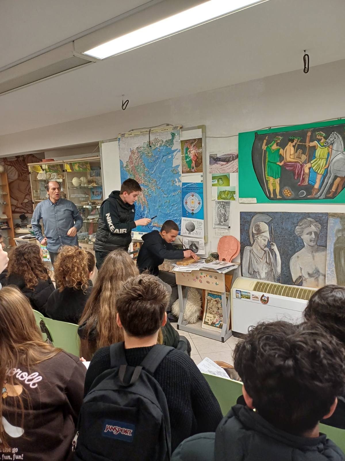Η πρώτη στάση της επίσκεψης ήταν το Μουσείο Γεωλογικής Ιστορίας Ολύμπου στη Λεπτοκαρυά. Εκεί, τους μαθητές υποδέχθηκε ο ιδρυτής του μουσείου, κος. Γιώργος Αρζανάς, ένας άνθρωπος που αποτελεί σπάνιο κράμα επιστήμονα, παθιασμένου ερευνητή και χαρισματικού ομιλητή.