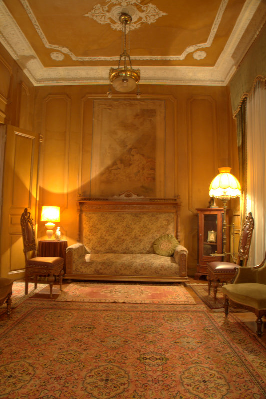 Άποψη τμήματος του εσωτερικού της οικίας του Δημ. Αλεξάνδρου. Προβάλλεται σαν μια ελάχιστη ανάμνηση της ιστορικής διακόσμησης και της διάχυτης αρχοντικής αύρας της, με την ευκαιρία της πρόσφατης προσπάθειας να χαρακτηριστεί, έπειτα από τόσες αχαρακτήριστες καταστροφές, διατηρητέα.