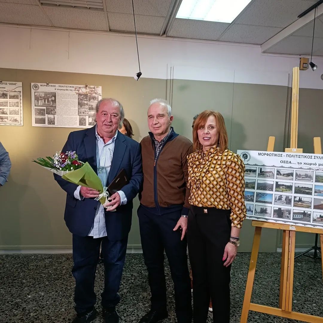 Παρουσία του Δημάρχου Τεμπών Γιώργου Μανώλη πραγματοποιήθηκαν τα εγκαίνια της έκθεσης φωτογραφίας με τίτλο «Η Όσσα στο διάβα… των χρόνων», την Παρασκευή 20 Μαρτίου 2026, στο Χατζηγιάννειο Πνευματικό Κέντρο Λάρισας, σε μια ιδιαίτερα συγκινητική εκδήλωση που διοργάνωσε ο Μορφωτικός – Πολιτιστικός Σύλλογος Όσσας.