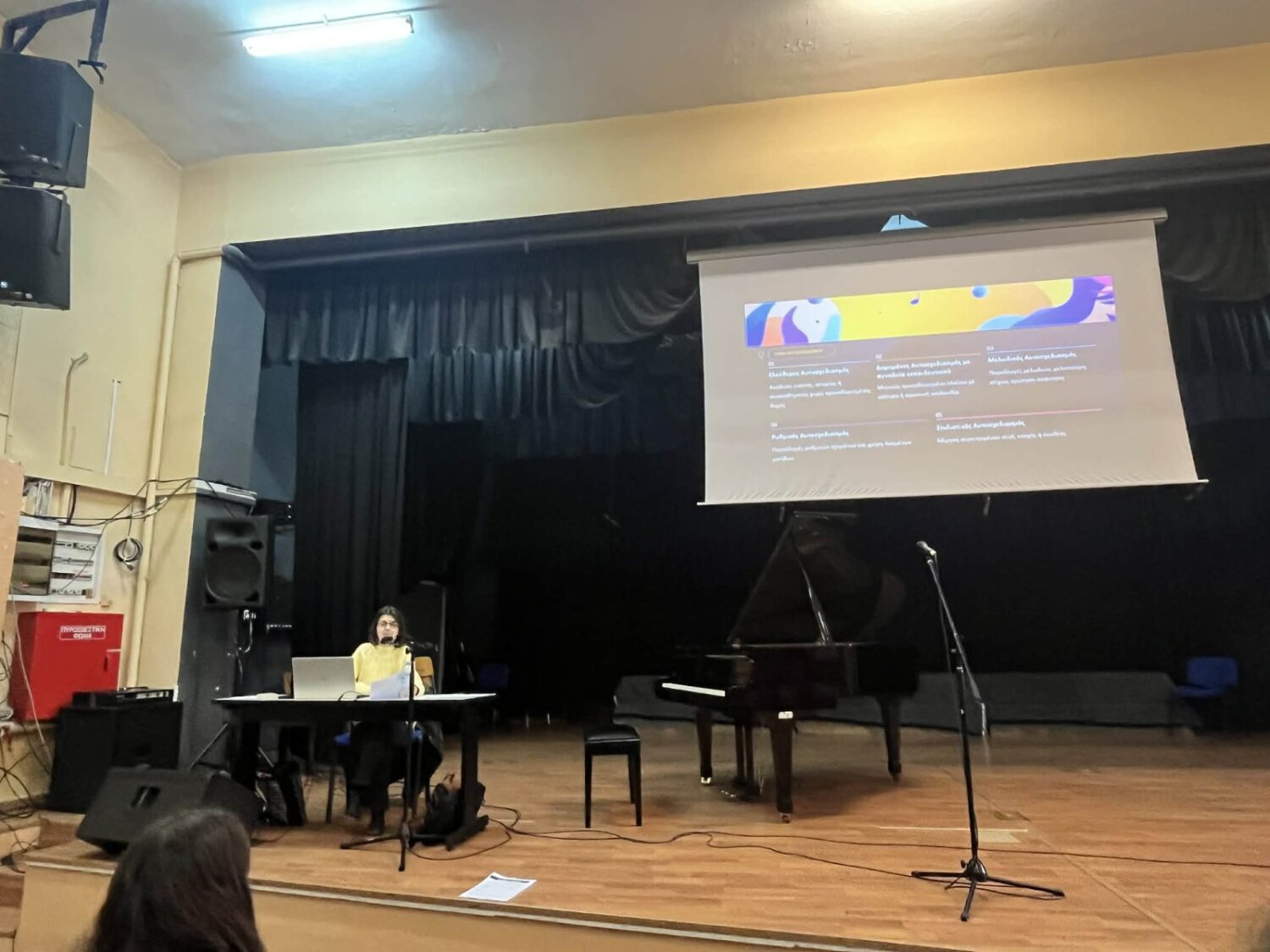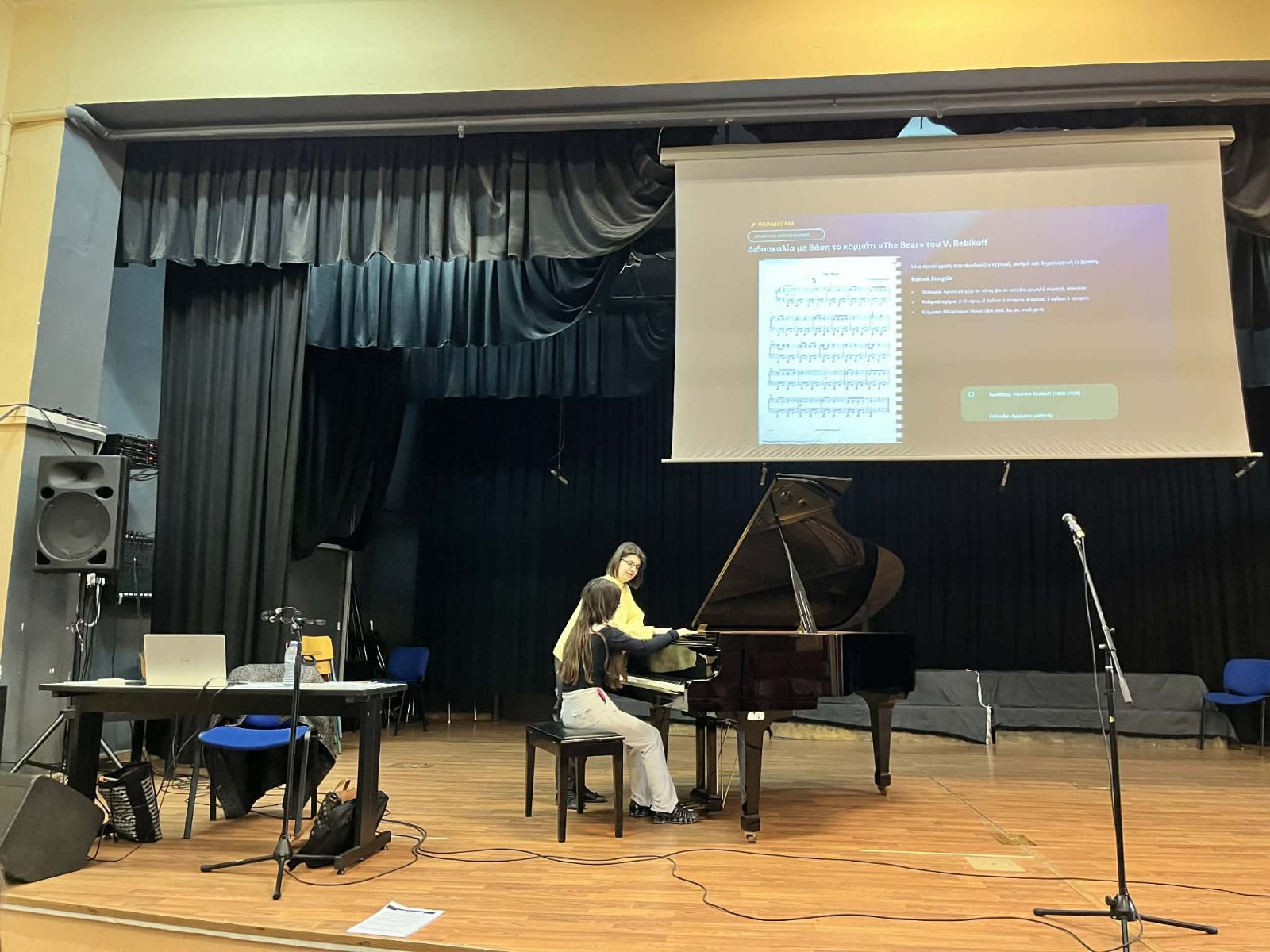Την Πέμπτη 19/3/2026, στο αμφιθέατρο του Μουσικού Σχολείου Λάρισας, πραγματοποιήθηκε συνάντηση εργασίας του γνωστικού πεδίου πιάνου, με τη δράση ενδοσχολικής επιμόρφωσης από την εκπαιδευτικό πιάνου Κακαγιάννη Βασιλική, με θέμα: “Αυτοσχεδιασμός και Δημιουργικότητα στο Πιάνο: Πρακτικές προσεγγίσεις για τη διδασκαλία του αυτοσχεδιασμού στο μάθημα του πιάνου στα Μουσικά Σχολεία”.