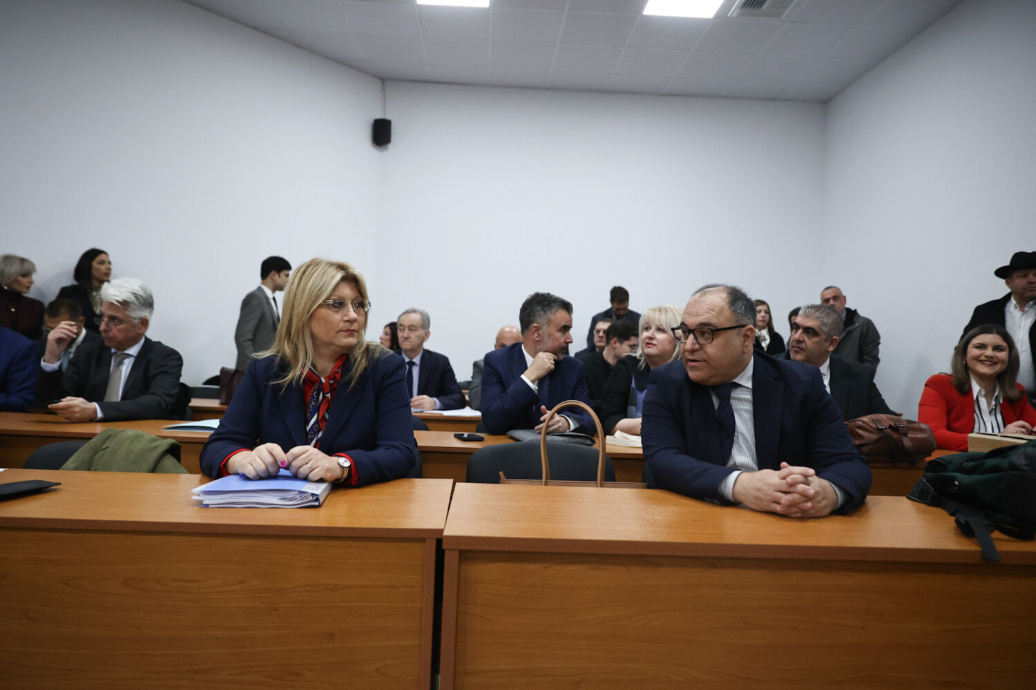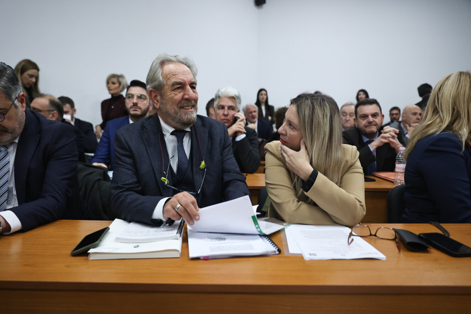 Με συγγενείς θυμάτων, δικηγόρους και δημοσιογράφους γεμίζει η αίθουσα του Συνεδριακού Κέντρου όπου θα διεξαχθεί η δίκη για το δυστύχημα στα Τέμπη από το Τριμελές Εφετείο Κακουργημάτων Λάρισας.