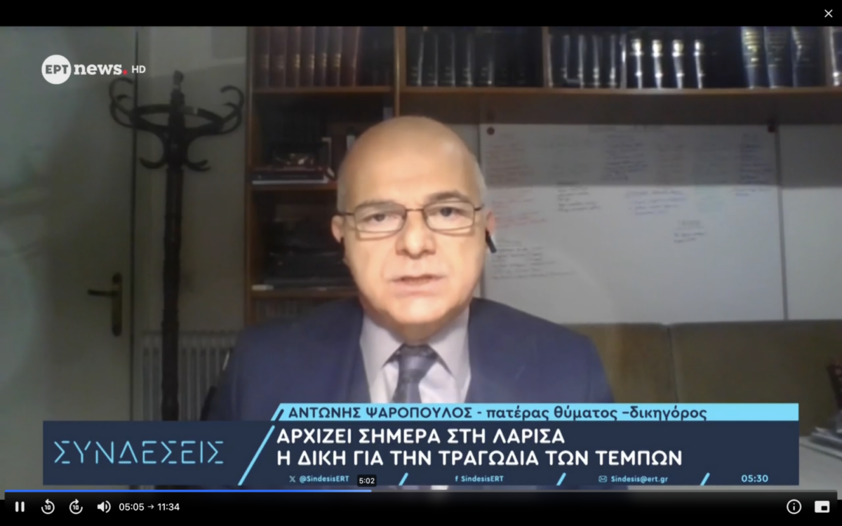 Ο δικηγόρος στην υπόθεση της τραγωδίας των Τεμπών, και πατέρας θύματος, Αντώνης Ψαρόπουλος, μιλά στις Συνδέσεις. «Είναι η μέρα που περιμένουμε όλοι οι συγγενείς» δηλώνει ο κ. Ψαρόπουλος και υπογραμμίζει πως η δίκη θα διαρκέσει 2 – 2,5 έτη, ενώ ο ίδιος θα μεταβαίνει κάθε μέρα στη Λάρισα για τη δίκη.