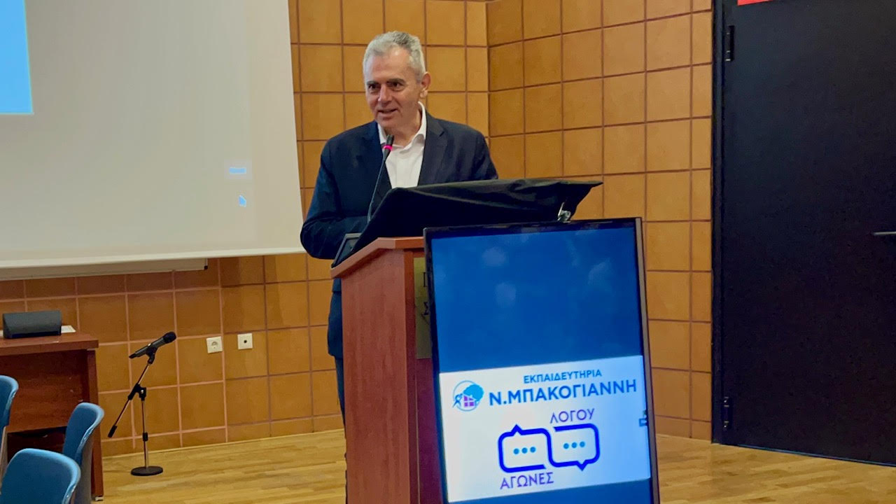 Ο Θεσσαλός πολιτικός, που παρακολουθούσε την αντιπαράθεση επιχειρημάτων για το ζήτημα της καθιέρωσης των ηλεκτρονικών δημοψηφισμάτων, συνεχάρη τον σχολάρχη κ. Νίκο Μπακογιάννη και όλη την εκπαιδευτική κοινότητα για το επίπεδο των σπουδών που παρέχουν στα παιδιά. Όπως χαρακτηριστικά είπε «έμεινα εντυπωσιασμένος από το επίπεδο των επιχειρημάτων που αντιπαρέθεσαν οι δυο ομάδες, η “Θέση” και η “Άρση”. Πραγματικά με εντυπωσίασαν. Θα τολμούσα να πω μακάρι αυτό το επίπεδο να χαρακτήριζε και τη σημερινή Βουλή. Η Ελλάδα είναι η χώρα που γέννησε τη δημοκρατία και ανέπτυξε τη ρητορική τέχνη και σε αυτό βοήθησε, αναμφίβολα, το γεγονός ότι η ελληνική γλώσσα είναι η πιο πλούσια γλώσσα του κόσμου. Αλλά στις μέρες μας και, δυστυχώς, στις νεότερες γενιές βλέπουμε αυτός ο πλούτος της γλώσσας να μην αναπτύσσεται. Θα έλεγα, βλέπουμε μια λεξιπενία στην καθημερινότητά μας και αυτό δεν μας τιμά. Και ακόμη περισσότερο δεν μας τιμά το γεγονός ότι στο κατ’ εξοχήν βήμα αντιπαράθεσης επιχειρημάτων, που είναι το βήμα της εθνικής αντιπροσωπείας, της ελληνικής Βουλής, του ναού της Δημοκρατίας του αποκαλουμένου, δεν έχουμε το επίπεδο της ρητορικής αντιπαράθεσης που χαρακτήριζε παλαιότερες δεκαετίες».