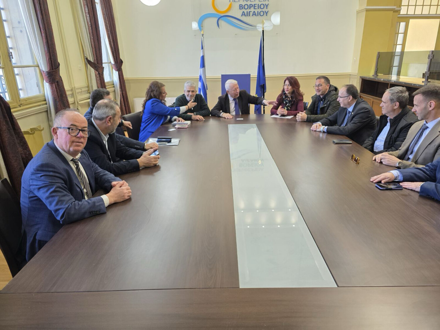 Από το Επιμελητήριο Λάρισας ανακοινώνεται ότι ο Πρόεδρος του Φορέα μας Χρήστος Γιακουβής συμμετείχε σε συνάντηση, που πραγματοποιήθηκε τη Δευτέρα 16 Μαρτίου 2026 με την Περιφέρεια Βορείου Αιγαίου, παρουσία του Περιφερειάρχη κ. Κωνσταντίνου Μουτζούρη, των Αντιπεριφερειαρχών κ. Κωνσταντίνου Αρώνη και κ. Ευστρατίου Κυρατζή, του Προέδρου του Επιμελητηρίου Λέσβου κ. Παναγιώτη Τατάκη καθώς και των Προέδρων των Επιμελητηρίων Χίου κ. Παντελή Λεγάτου, Σάμου κ. Γιώργου Κυριαζή, Μαγνησίας κ. Αριστοτέλη Μπασδάνη και Καρδίτσας κ. Κωνσταντίνου Ζυγογιάννη.