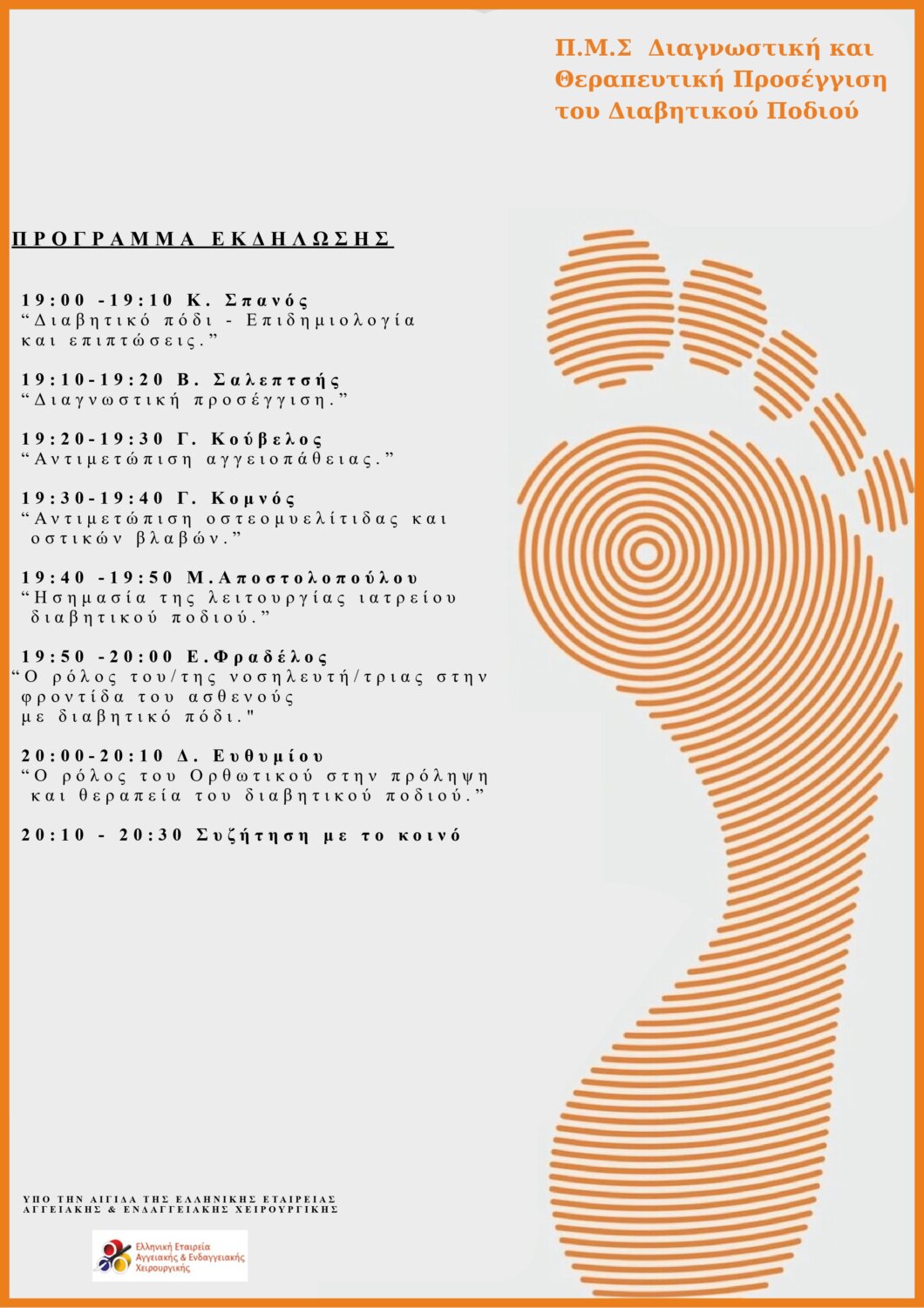 Η εκδήλωση διοργανώνεται στο πλαίσιο του Μεταπτυχιακού Προγράμματος Σπουδών «Διαγνωστική και Θεραπευτική Προσέγγιση του Διαβητικού Ποδιού» του Τμήματος Ιατρικής του Πανεπιστημίου Θεσσαλίας, τελεί υπό την αιγίδα της Ελληνικής Εταιρείας Αγγειακής και Ενδαγγειακής Χειρουργικής (ΕΕΑΕΧ) και είναι ανοιχτή στο κοινό. Στόχος της είναι η ενημέρωση και ευαισθητοποίηση των πολιτών σχετικά με την πρόληψη, τη θεραπεία και τη σωστή φροντίδα του διαβητικού ποδιού, αλλά και η παροχή συνεχιζόμενης εκπαίδευσης στους φοιτητές και αποφοίτους του Μεταπτυχιακού Προγράμματος Σπουδών.