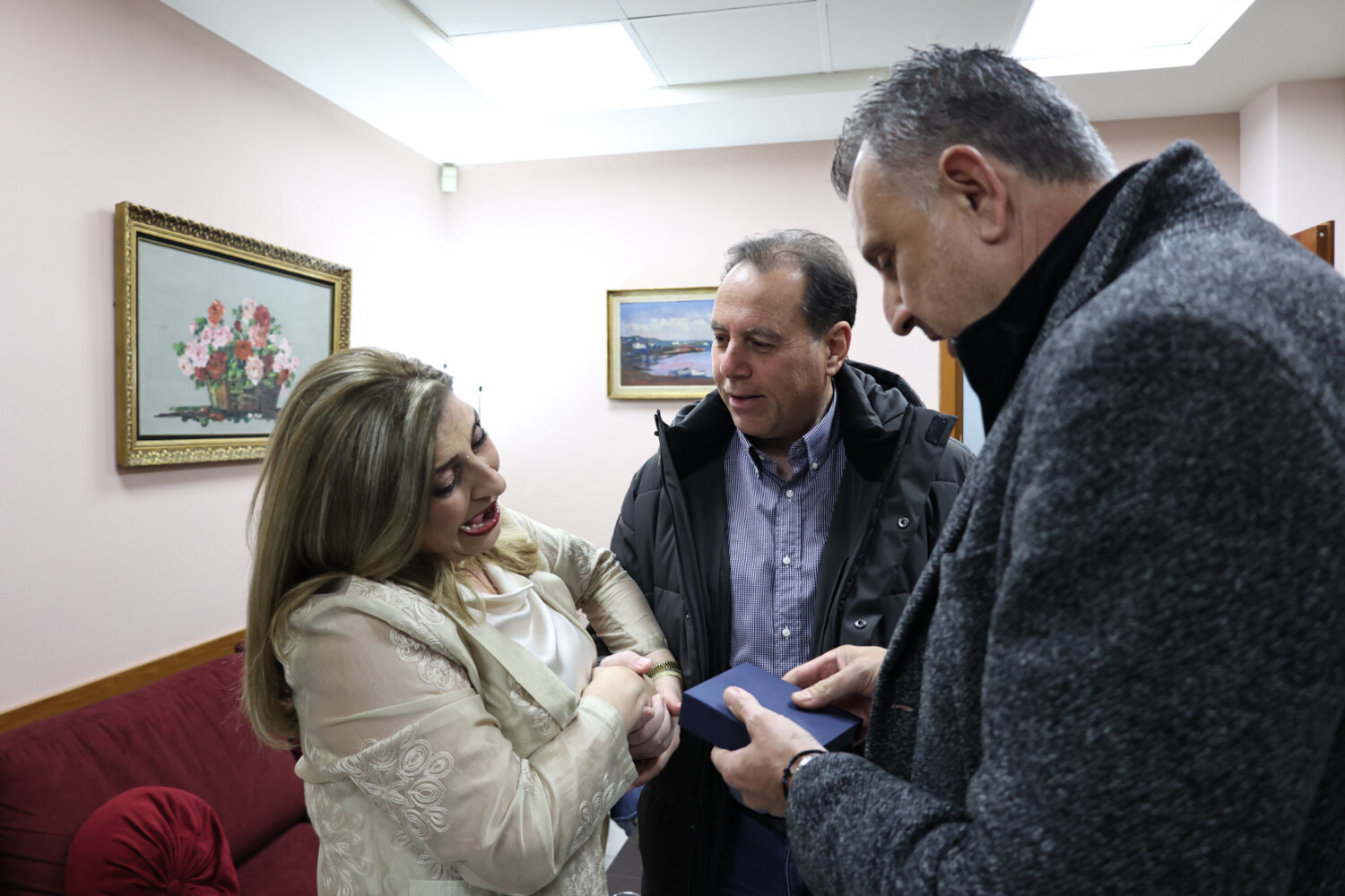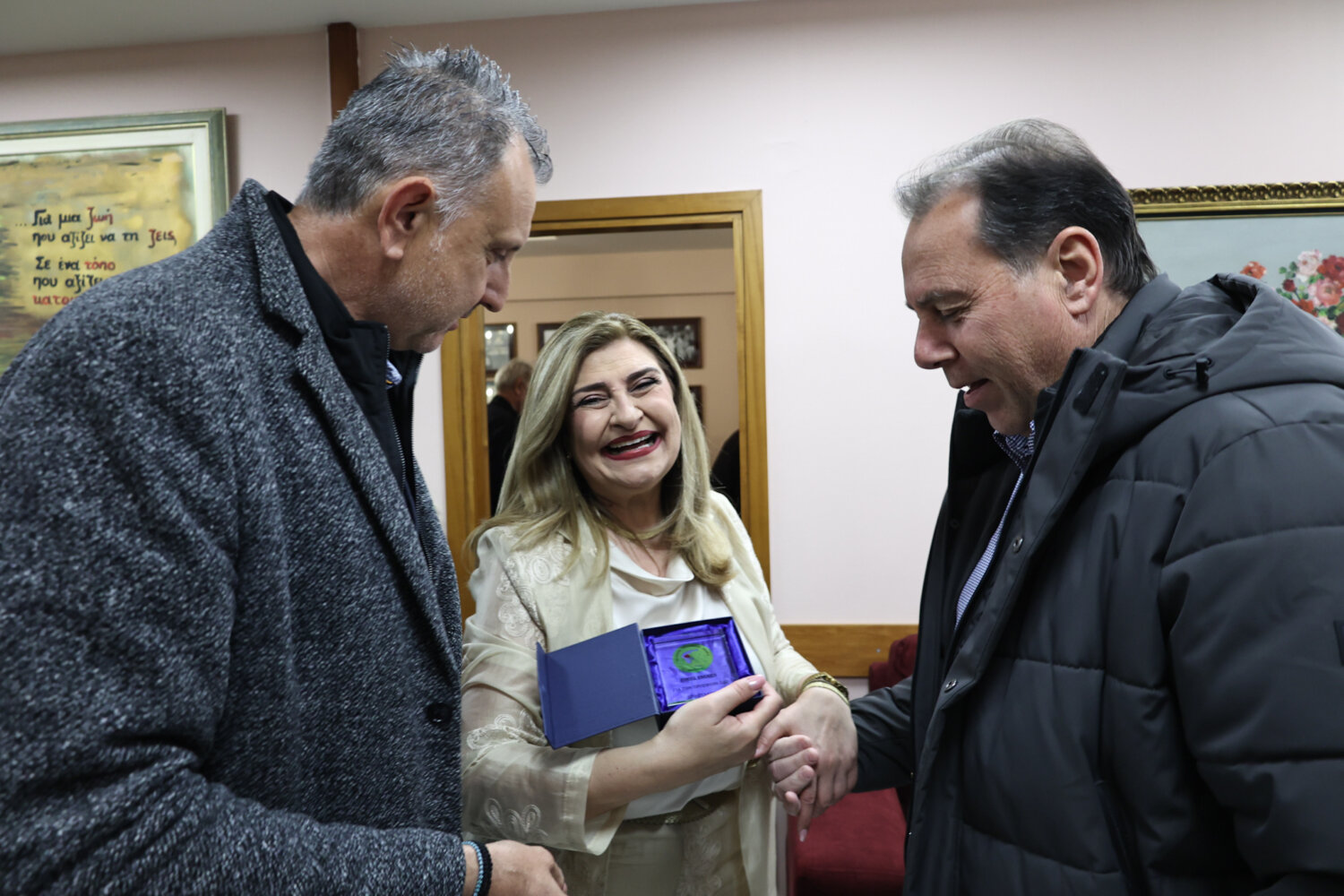 Πλήθος κόσμου επισκέπτεται το απόγευμα της Τρίτης το γραφείο της βουλευτή του ΚΙΝΑΛ-ΠΑΣΟΚ Λάρισας κας Ευαγγελίας Λιακούλη για να της ευχηθεί για την αυριανή της ονομαστική εορτή.