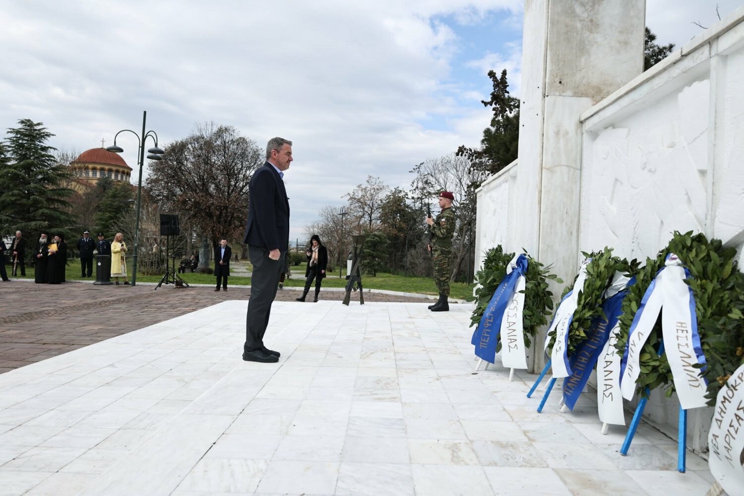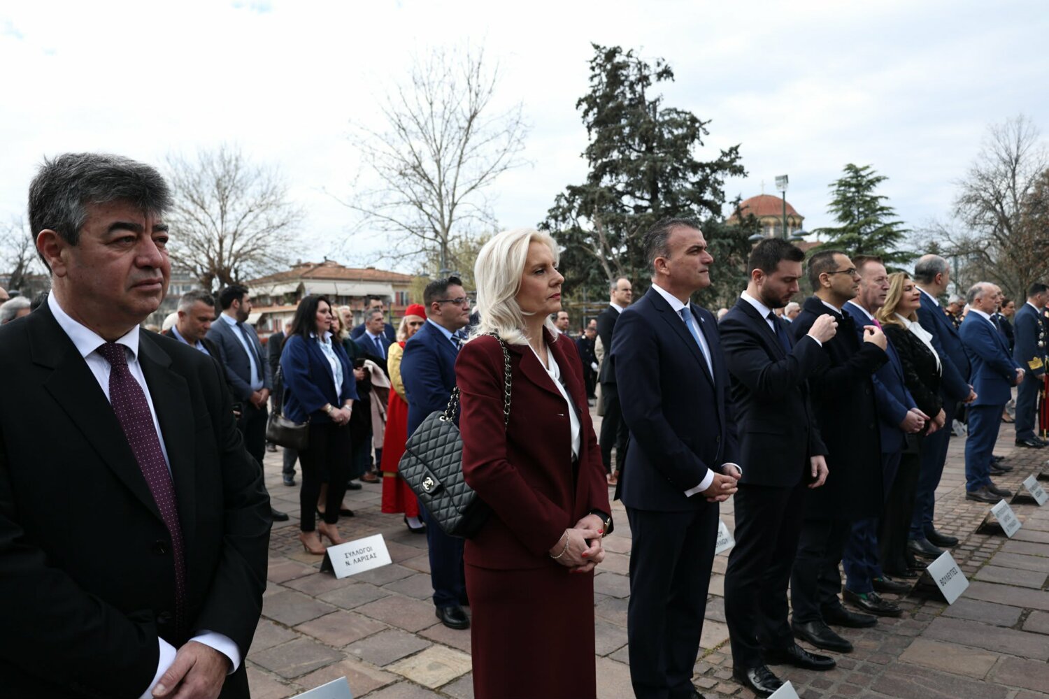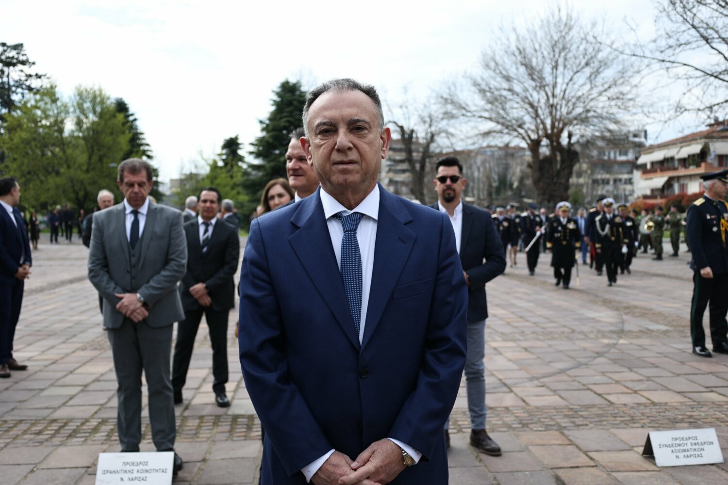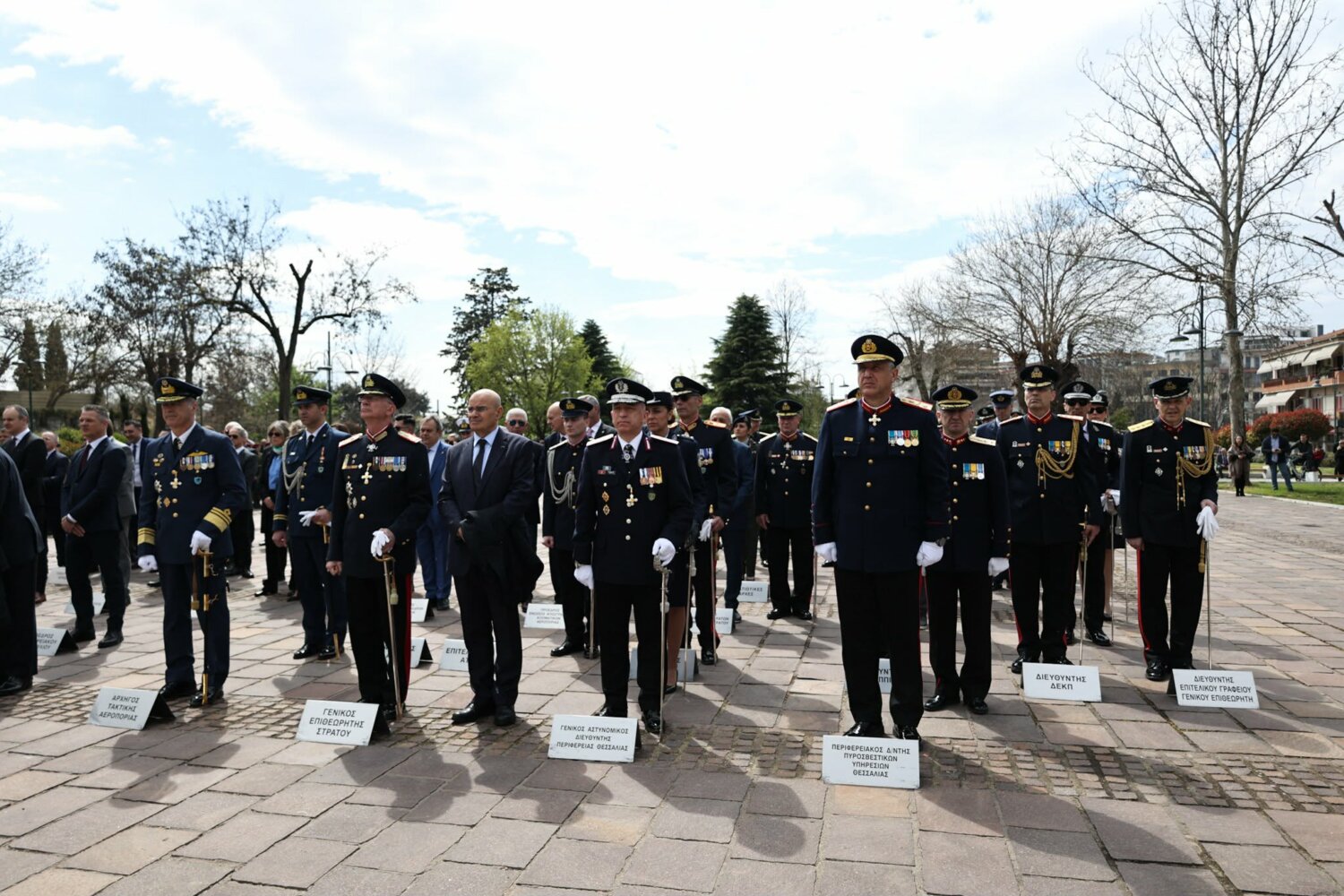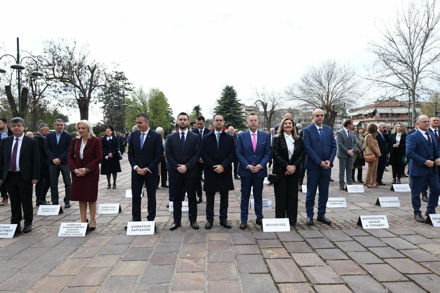 Εκπρόσωπος από την Κυβέρνηση, εκπρόσωπος Περιφερειάρχη Θεσσαλίας, ο δήμαρχος Λαρισαίων, εκπρόσωπος Ενόπλων Δυνάμεων, Αρχηγός Τακτικής Αεροπορίας, ο Πρύτανης Πανεπιστημίου Θεσσαλίας, ο γενικός Αστυνομικός Διευθυντής Περιφέρειας Θεσσαλίας, ο Περιφερειακός Διοικητής Πυροσβεστικών Υπηρεσιών Θεσσαλίας, Νέα Δημοκρατία Λάρισας, ΣΥΡΙΖΑ -ΠΣ Λάρισας, Νίκη Λάρισας, Πλεύση Ελευθερίας-Ζωη Κωνσταντοπούλου, Περιφερειακή Διευθύντρια Πρωτοβάθμιας και Δευτεροβάθμιας εκπαίδευσης Θεσσαλίας, πρόεδρος Ισραηλιτικής Κοινότητας Λάρισας, πρόεδρος Δικηγορικού Συλλόγου Λάρισας, Επιμελητήριο Λάρισας, πρόεδρος Ενώσεως αποστράτων αξιωματικού Περιφερειακής Ενότητας Λάρισας, πρόεδρος Ενώσεως αποστράτων Αξιωματικών Ναυτικού, πρόεδρος Ενώσεων αποστράτων Αξιωματικών Αεροπορίας Λάρισας, πρόεδρος συνδέσμου εφέδρων Αξιωματικών νομού Λάρισας, εκπρόσωπος του συνδέσμου απόστρατων αξιωματικών του νομού Λάρισας, πρόεδρος Ενώσεως Στρατιωτικών Περιφερειακής Ενότητας Λάρισας, ΑΧΕΠΑ Λάρισας, Σύλλογος Κυπρίων νομού Λάρισας, πρόεδρος του συνδέσμου Βορειοηπειρωτών Θεσσαλίας Ο ΠΥΡΟΣ, πρόεδρος του συνδέσμου Πελοποννησίων νομού Λάρισας Ο ΜΟΡΙΑΣ, Σύνδεσμος Σαρακατσαναίων νομού Λάρισας Ο ΚΑΤΣΑΝΤΩΝΗΣ, πρόεδρος πανηπειρωτικου συνδέσμου νομού Λάρισας.