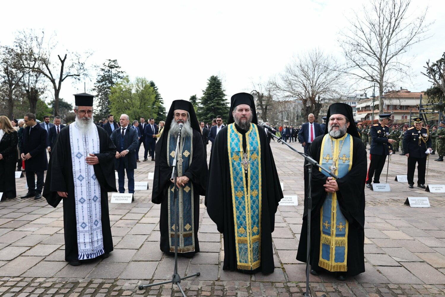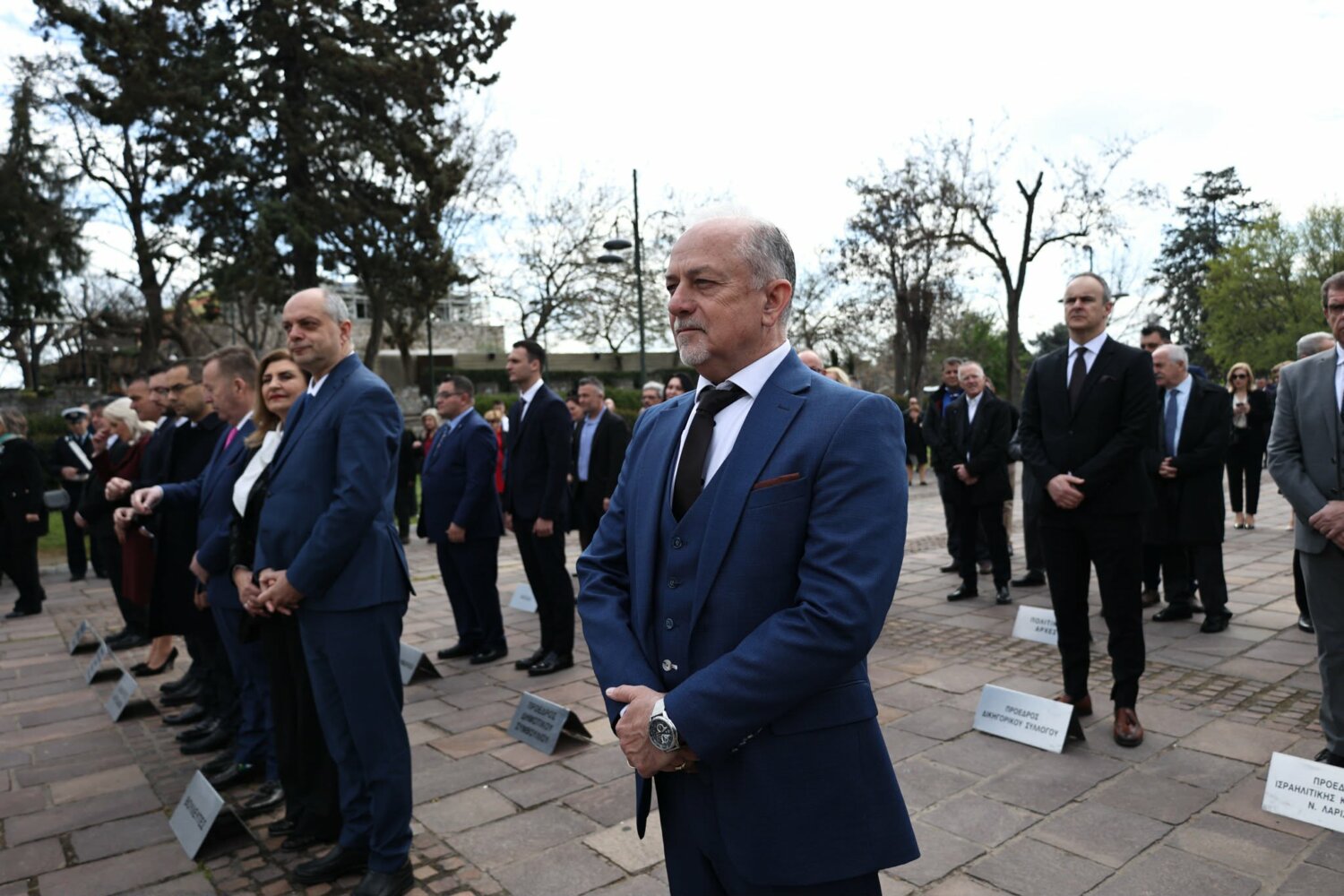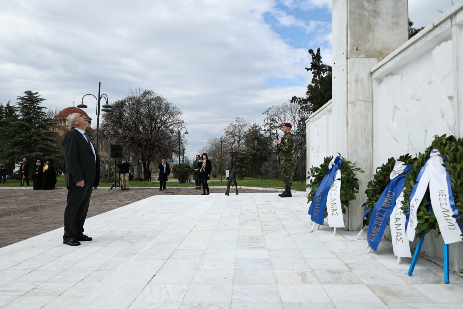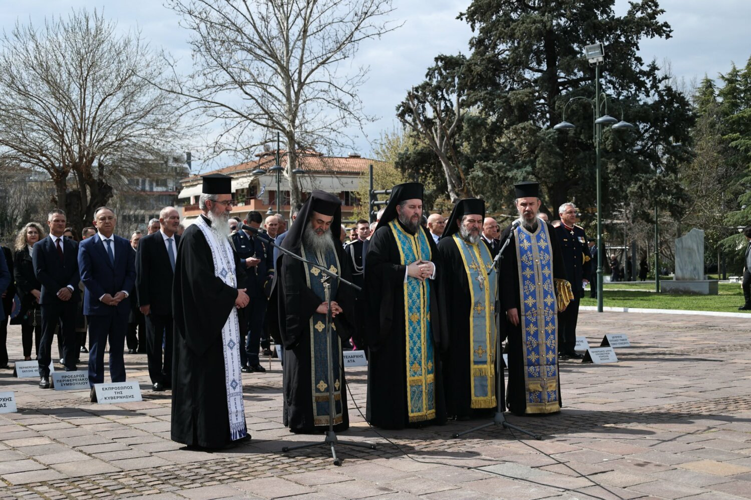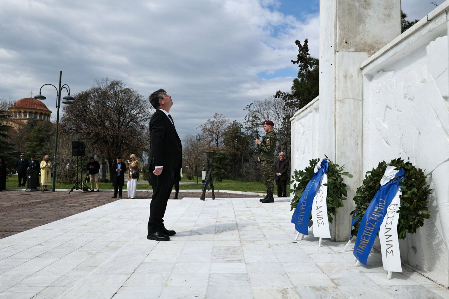 Εκπρόσωπος από την Κυβέρνηση, εκπρόσωπος Περιφερειάρχη Θεσσαλίας, ο δήμαρχος Λαρισαίων, εκπρόσωπος Ενόπλων Δυνάμεων, Αρχηγός Τακτικής Αεροπορίας, ο Πρύτανης Πανεπιστημίου Θεσσαλίας, ο γενικός Αστυνομικός Διευθυντής Περιφέρειας Θεσσαλίας, ο Περιφερειακός Διοικητής Πυροσβεστικών Υπηρεσιών Θεσσαλίας, Νέα Δημοκρατία Λάρισας, ΣΥΡΙΖΑ -ΠΣ Λάρισας, Νίκη Λάρισας, Πλεύση Ελευθερίας-Ζωη Κωνσταντοπούλου, Περιφερειακή Διευθύντρια Πρωτοβάθμιας και Δευτεροβάθμιας εκπαίδευσης Θεσσαλίας, πρόεδρος Ισραηλιτικής Κοινότητας Λάρισας, πρόεδρος Δικηγορικού Συλλόγου Λάρισας, Επιμελητήριο Λάρισας, πρόεδρος Ενώσεως αποστράτων αξιωματικού Περιφερειακής Ενότητας Λάρισας, πρόεδρος Ενώσεως αποστράτων Αξιωματικών Ναυτικού, πρόεδρος Ενώσεων αποστράτων Αξιωματικών Αεροπορίας Λάρισας, πρόεδρος συνδέσμου εφέδρων Αξιωματικών νομού Λάρισας, εκπρόσωπος του συνδέσμου απόστρατων αξιωματικών του νομού Λάρισας, πρόεδρος Ενώσεως Στρατιωτικών Περιφερειακής Ενότητας Λάρισας, ΑΧΕΠΑ Λάρισας, Σύλλογος Κυπρίων νομού Λάρισας, πρόεδρος του συνδέσμου Βορειοηπειρωτών Θεσσαλίας Ο ΠΥΡΟΣ, πρόεδρος του συνδέσμου Πελοποννησίων νομού Λάρισας Ο ΜΟΡΙΑΣ, Σύνδεσμος Σαρακατσαναίων νομού Λάρισας Ο ΚΑΤΣΑΝΤΩΝΗΣ, πρόεδρος πανηπειρωτικου συνδέσμου νομού Λάρισας.