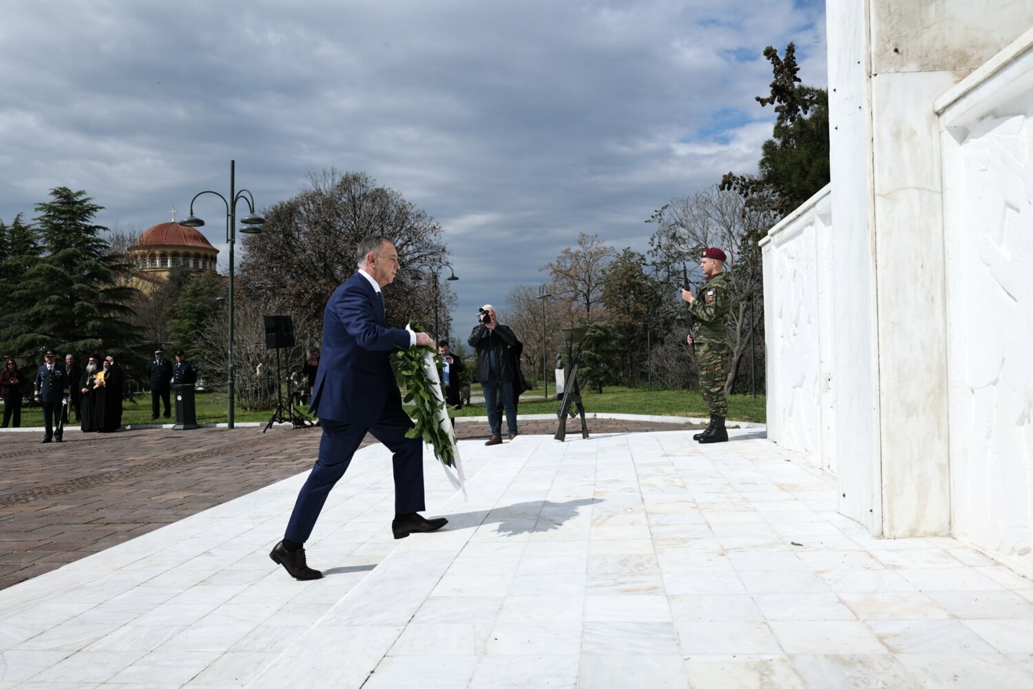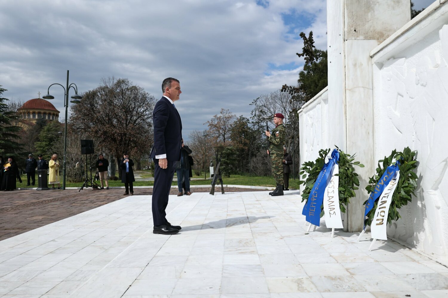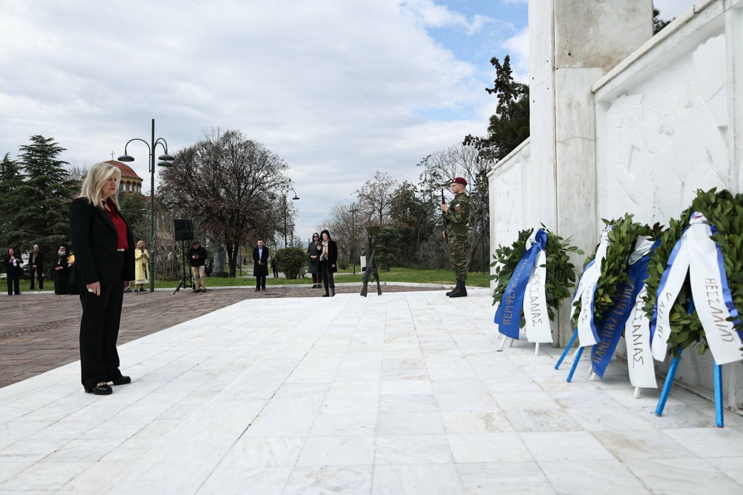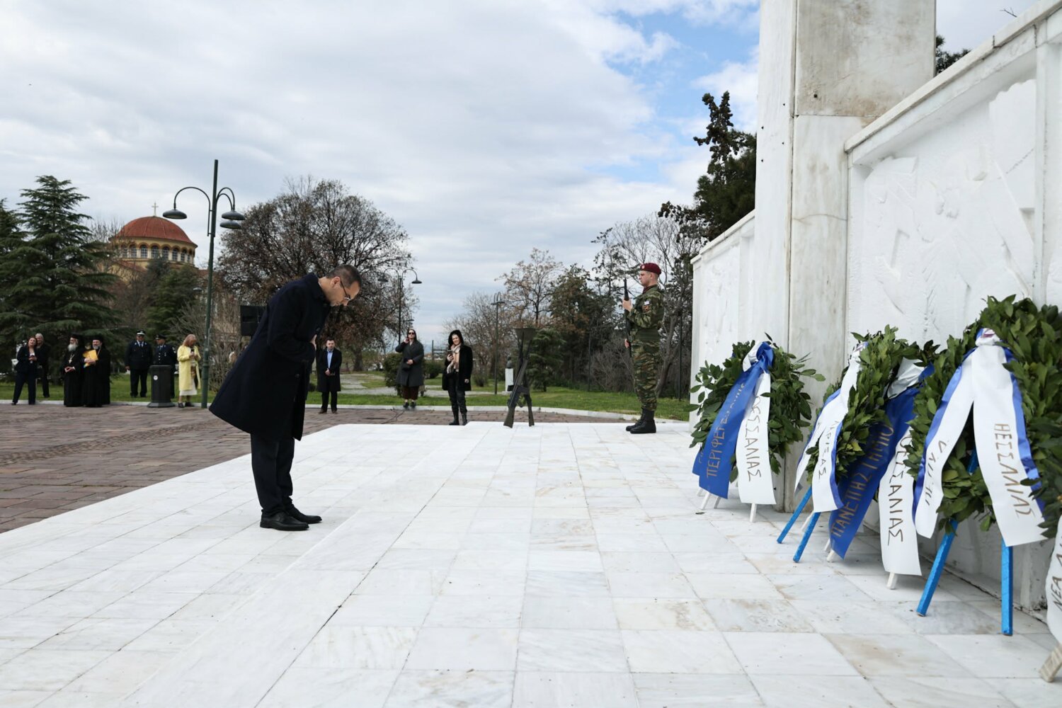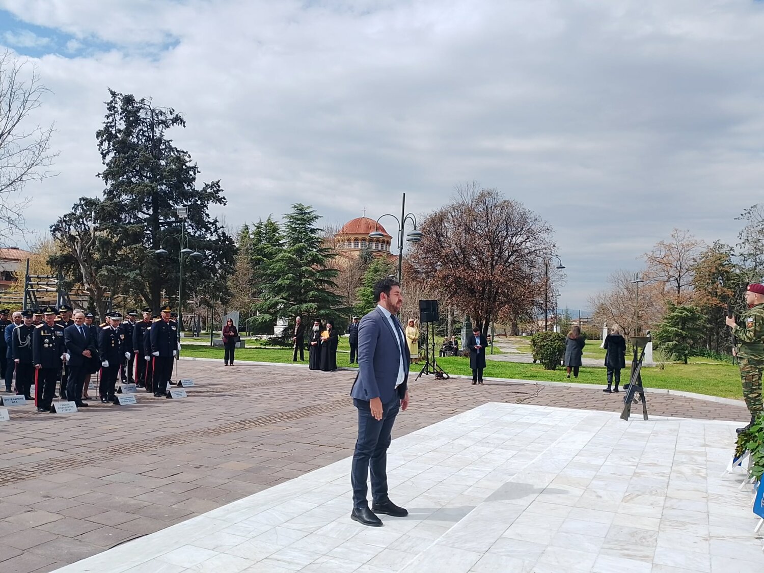 Εκπρόσωπος από την Κυβέρνηση, εκπρόσωπος Περιφερειάρχη Θεσσαλίας, ο δήμαρχος Λαρισαίων, εκπρόσωπος Ενόπλων Δυνάμεων, Αρχηγός Τακτικής Αεροπορίας, ο Πρύτανης Πανεπιστημίου Θεσσαλίας, ο γενικός Αστυνομικός Διευθυντής Περιφέρειας Θεσσαλίας, ο Περιφερειακός Διοικητής Πυροσβεστικών Υπηρεσιών Θεσσαλίας, Νέα Δημοκρατία Λάρισας, ΣΥΡΙΖΑ -ΠΣ Λάρισας, Νίκη Λάρισας, Πλεύση Ελευθερίας-Ζωη Κωνσταντοπούλου, Περιφερειακή Διευθύντρια Πρωτοβάθμιας και Δευτεροβάθμιας εκπαίδευσης Θεσσαλίας, πρόεδρος Ισραηλιτικής Κοινότητας Λάρισας, πρόεδρος Δικηγορικού Συλλόγου Λάρισας, Επιμελητήριο Λάρισας, πρόεδρος Ενώσεως αποστράτων αξιωματικού Περιφερειακής Ενότητας Λάρισας, πρόεδρος Ενώσεως αποστράτων Αξιωματικών Ναυτικού, πρόεδρος Ενώσεων αποστράτων Αξιωματικών Αεροπορίας Λάρισας, πρόεδρος συνδέσμου εφέδρων Αξιωματικών νομού Λάρισας, εκπρόσωπος του συνδέσμου απόστρατων αξιωματικών του νομού Λάρισας, πρόεδρος Ενώσεως Στρατιωτικών Περιφερειακής Ενότητας Λάρισας, ΑΧΕΠΑ Λάρισας, Σύλλογος Κυπρίων νομού Λάρισας, πρόεδρος του συνδέσμου Βορειοηπειρωτών Θεσσαλίας Ο ΠΥΡΟΣ, πρόεδρος του συνδέσμου Πελοποννησίων νομού Λάρισας Ο ΜΟΡΙΑΣ, Σύνδεσμος Σαρακατσαναίων νομού Λάρισας Ο ΚΑΤΣΑΝΤΩΝΗΣ, πρόεδρος πανηπειρωτικου συνδέσμου νομού Λάρισας.