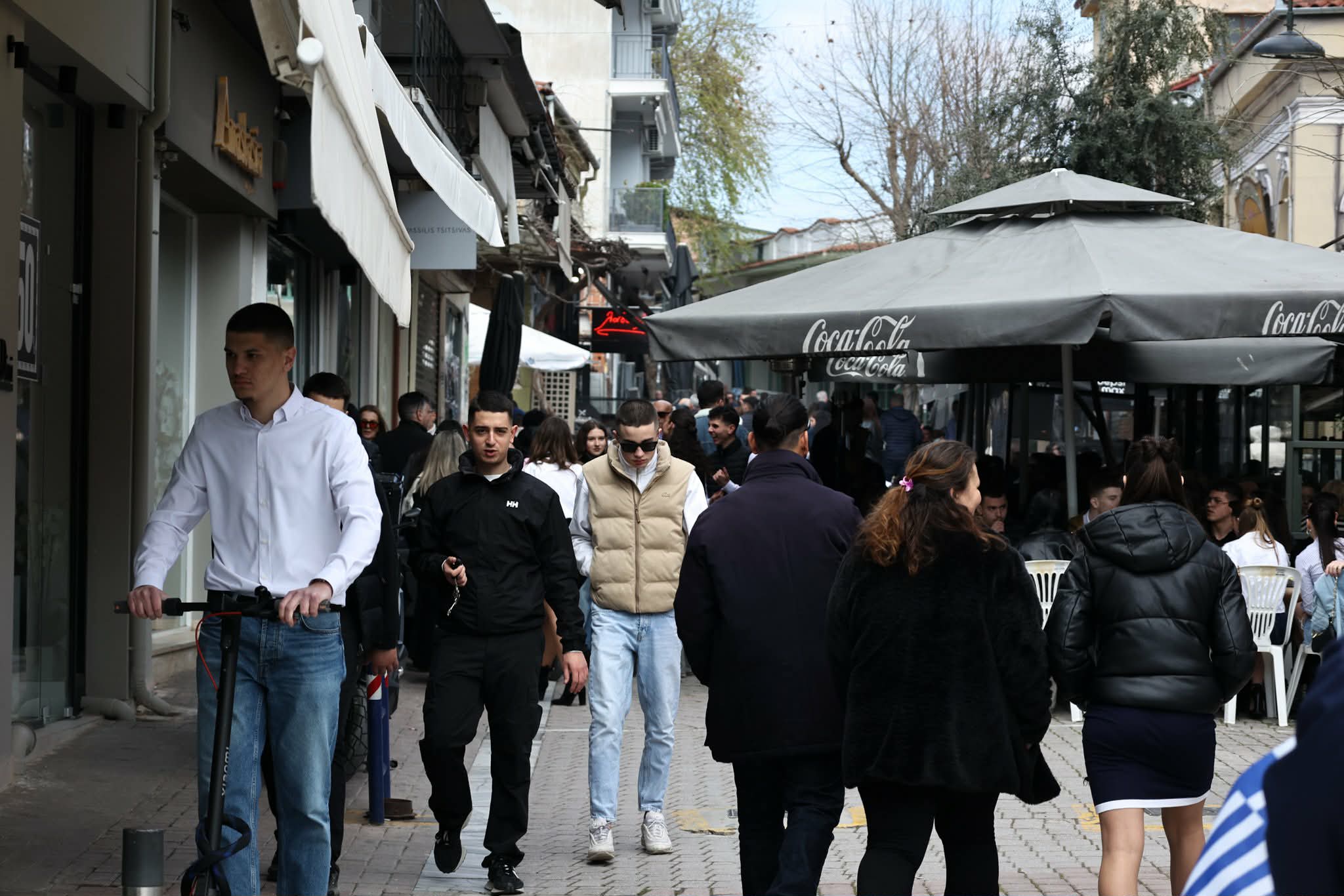 Ανήμερα της 25ης Μαρτίου και μετά την παρέλαση οι Λαρισαίοι «ξεχύθηκαν» στην πόλη για φαγητό τσίπουρο και καφέ.