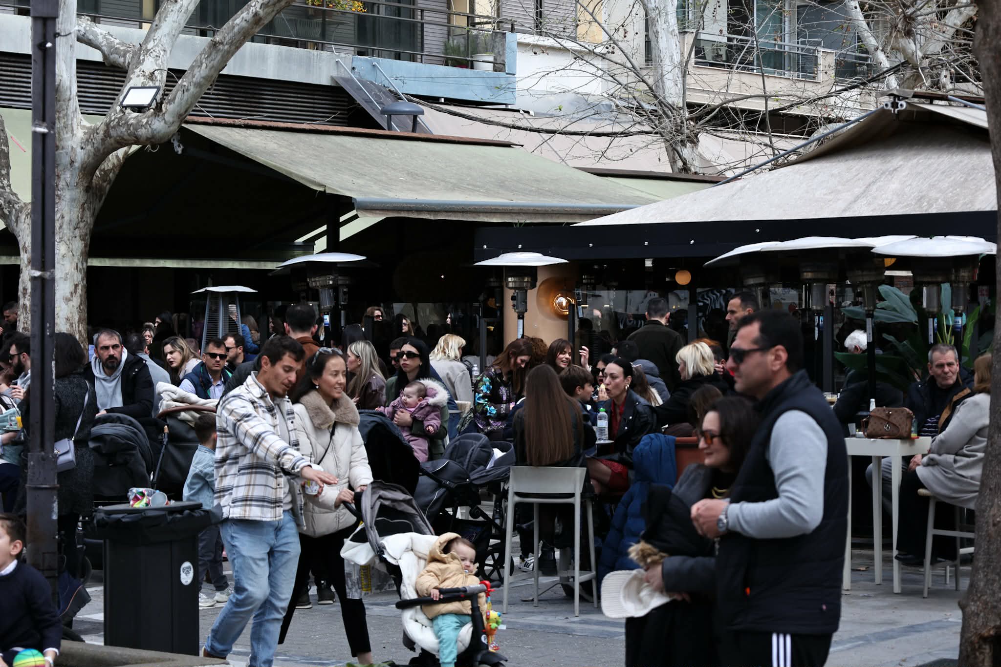Καφετέριες, ταβέρνες και τσιπουράδικα έχουν «κατακλυστεί» από κόσμο… Πλατείες, πεζόδρομοι και στέκια της πόλης παρουσιάζουν την παρακάτω εικόνα: