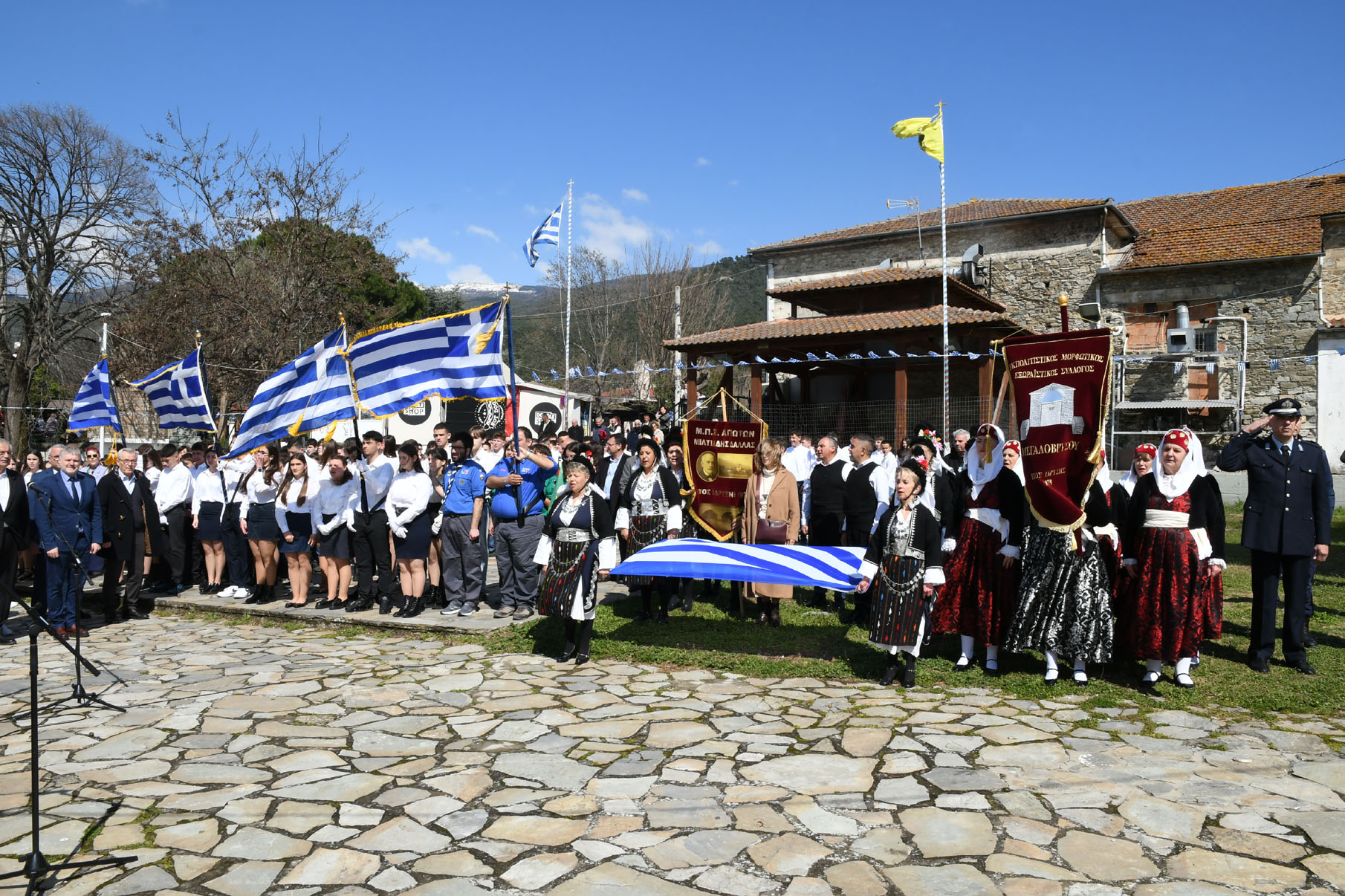 Οι εκδηλώσεις ολοκληρώθηκαν με παραδοσιακούς χορούς στην Κεντρική πλατεία από μαθητές του Γυμνασίου και από χορευτικά τμήματα του «Μιλτιάδη Δάλλα» και του Πολιτιστικού Συλλόγου Μεγαλοβρύσου.