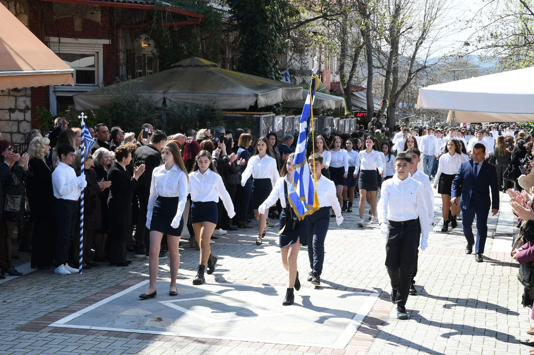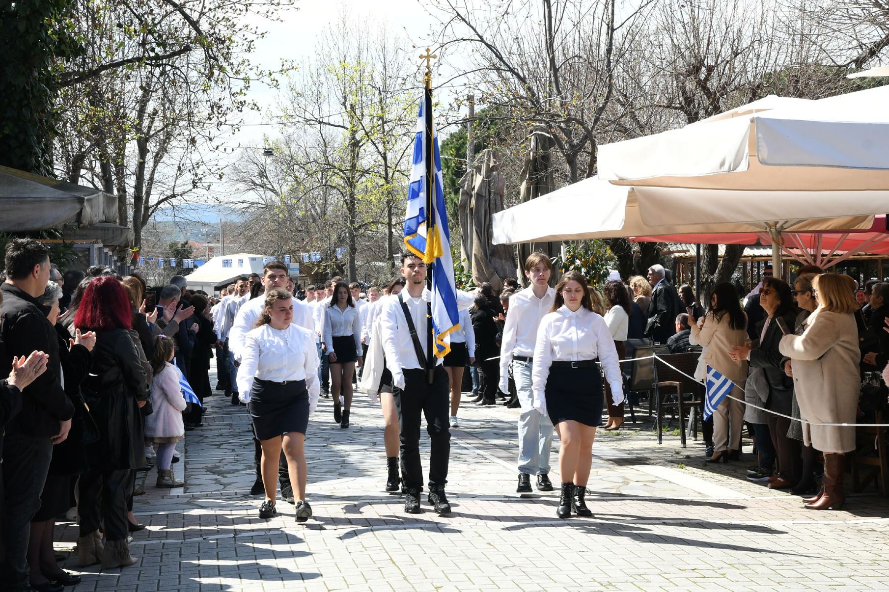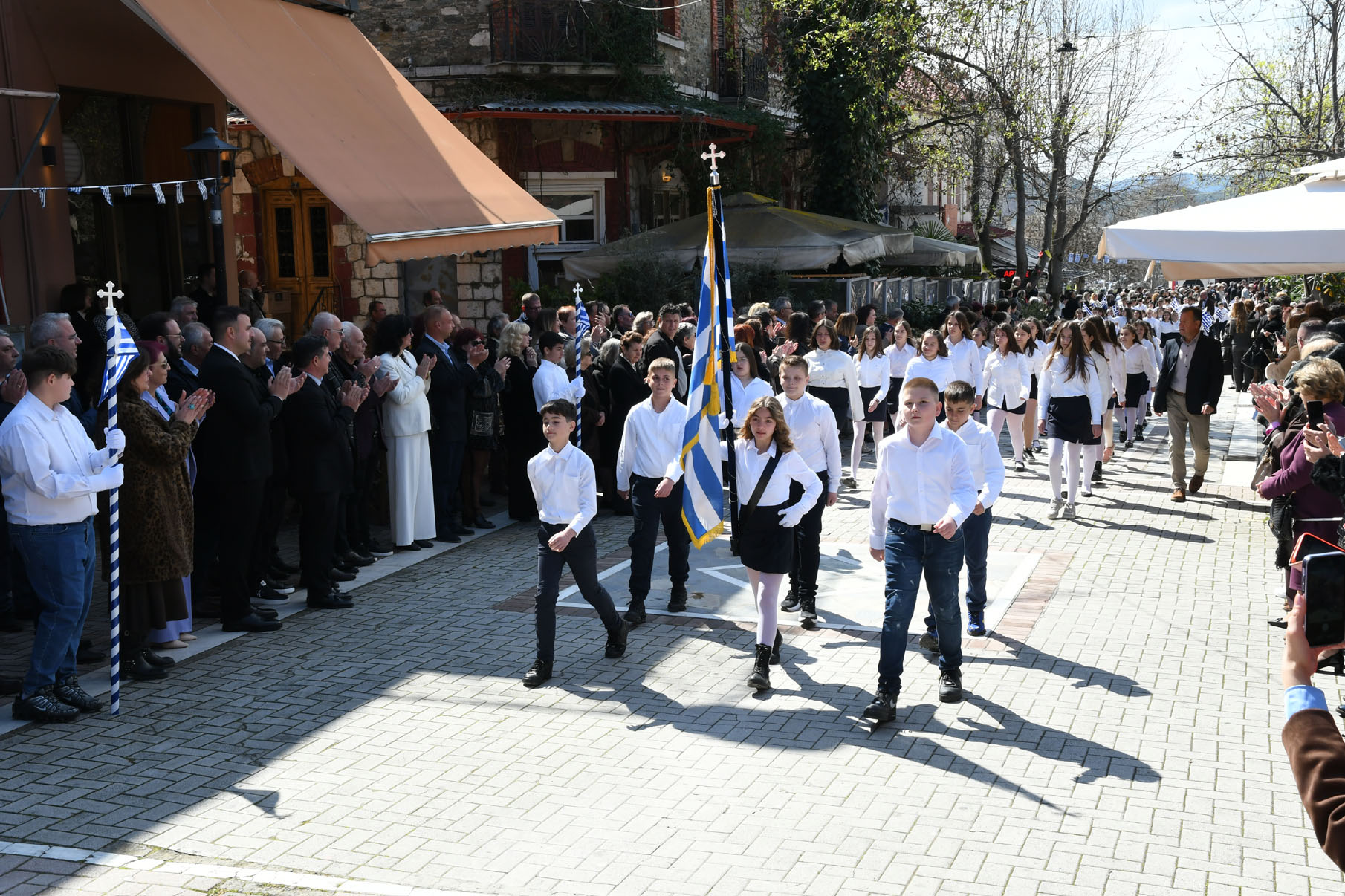 Μετά τις καταθέσεις στεφάνων παρέλασαν στην οδό 25ης Μαρτίου μαθητές των Νηπιαγωγείων, Δημοτικών Σχολείων, Γυμνασίου, Γενικού Λυκείου και ΕΠΑΛ Αγιάς, το 1ο Σύστημα Προσκόπων Αγιάς, όπως και τμήματα με παραδοσιακές φορεσιές του «Μιλτιάδη Δάλλα» και του Πολιτιστικού Συλλόγου Μεγαλοβρύσου, παρουσία πλήθους κόσμου που τους καταχειροκρότησε.
