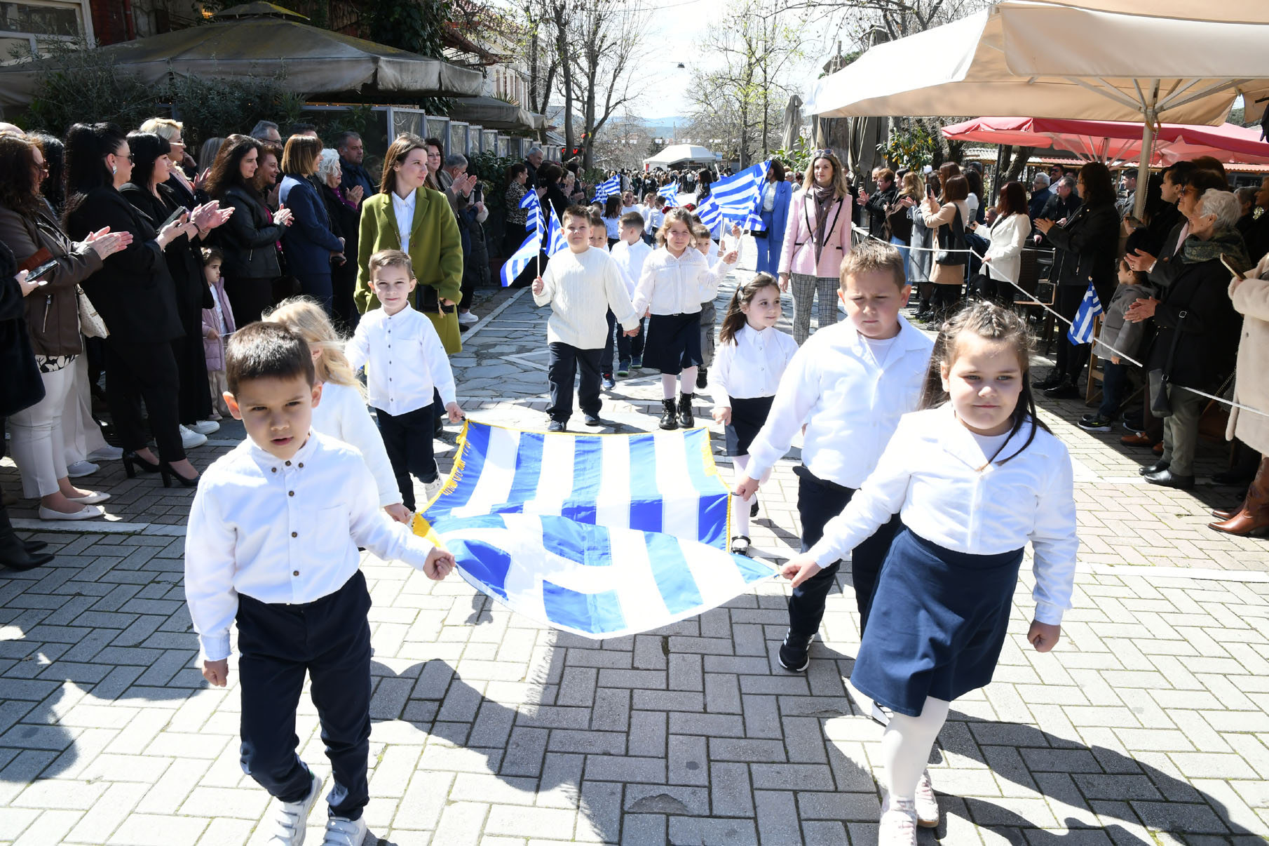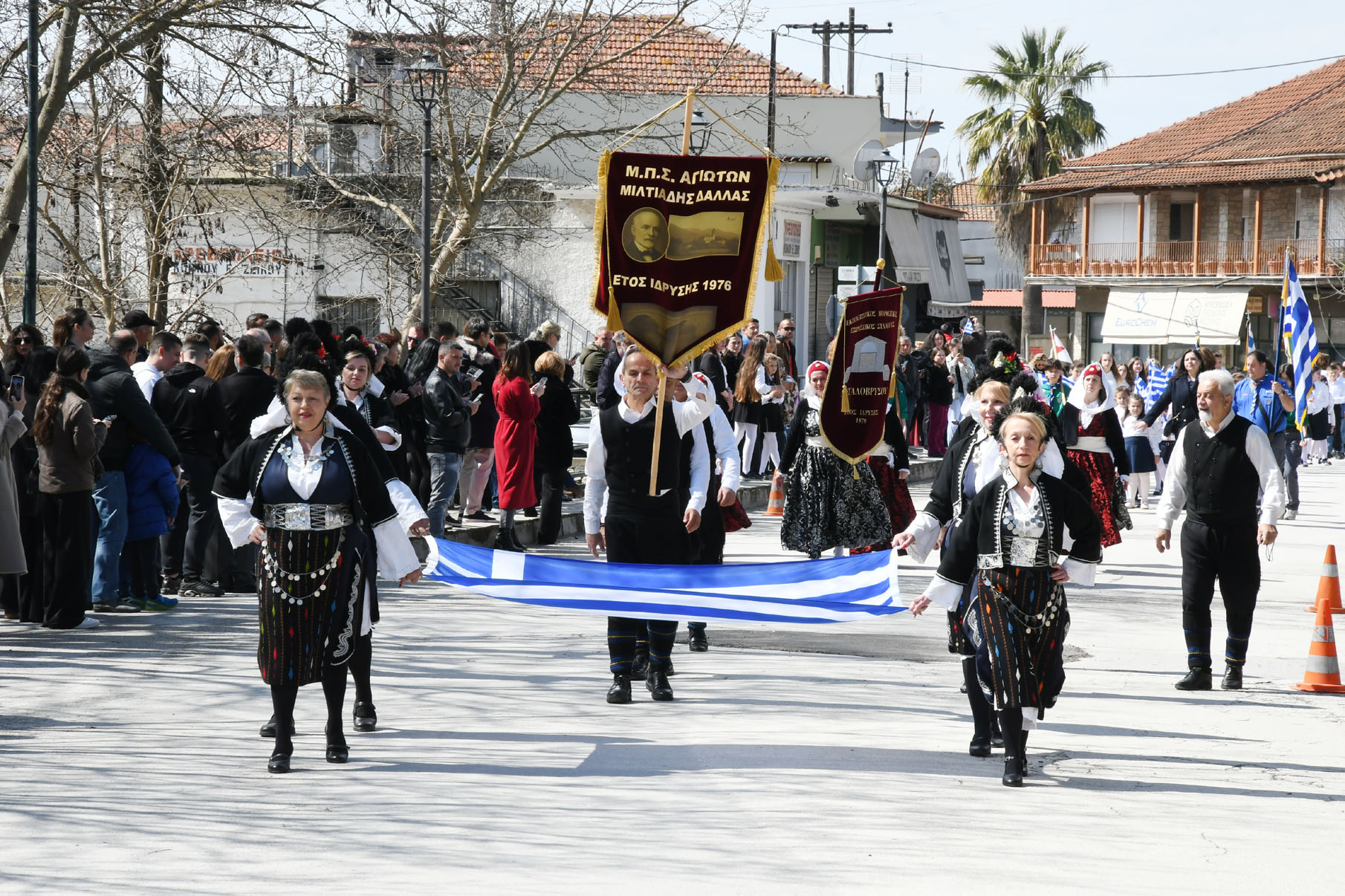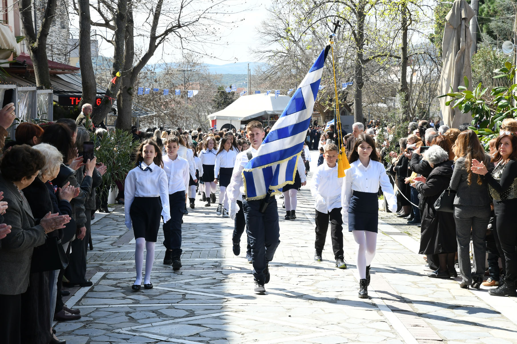 Μετά τις καταθέσεις στεφάνων παρέλασαν στην οδό 25ης Μαρτίου μαθητές των Νηπιαγωγείων, Δημοτικών Σχολείων, Γυμνασίου, Γενικού Λυκείου και ΕΠΑΛ Αγιάς, το 1ο Σύστημα Προσκόπων Αγιάς, όπως και τμήματα με παραδοσιακές φορεσιές του «Μιλτιάδη Δάλλα» και του Πολιτιστικού Συλλόγου Μεγαλοβρύσου, παρουσία πλήθους κόσμου που τους καταχειροκρότησε.