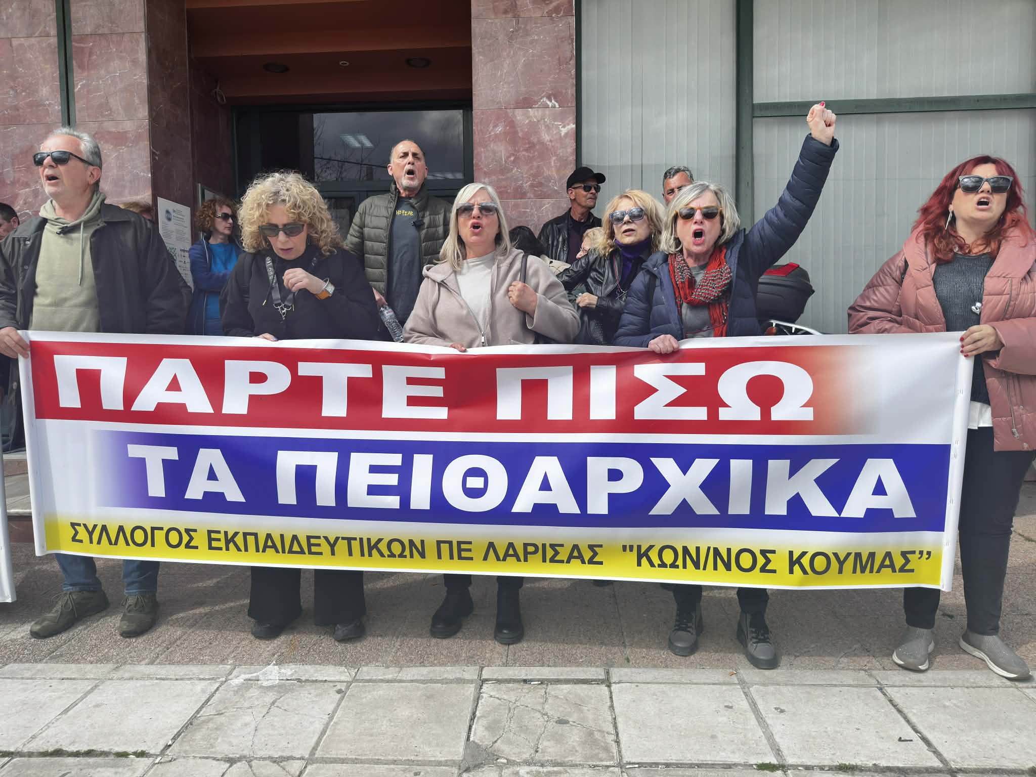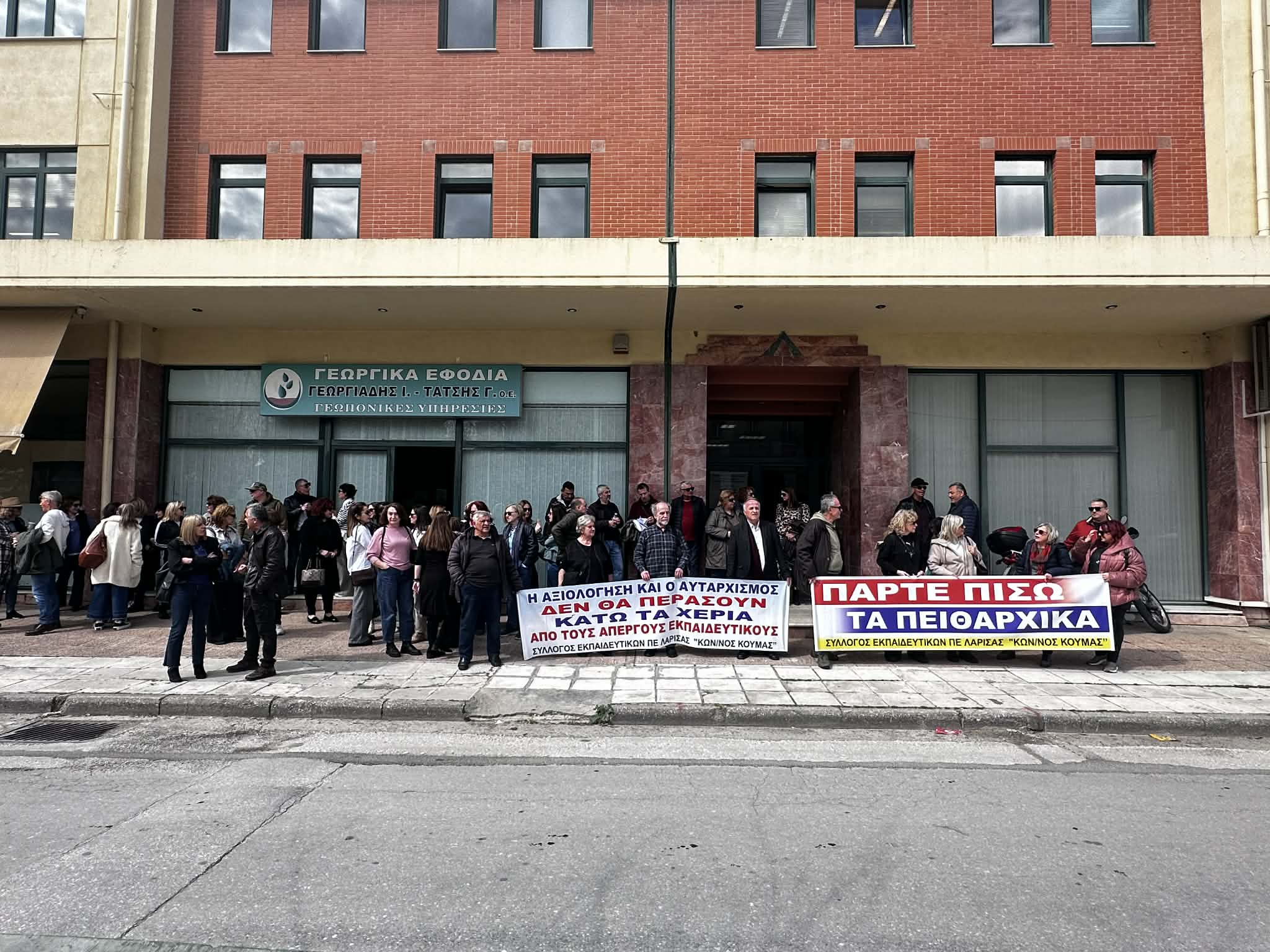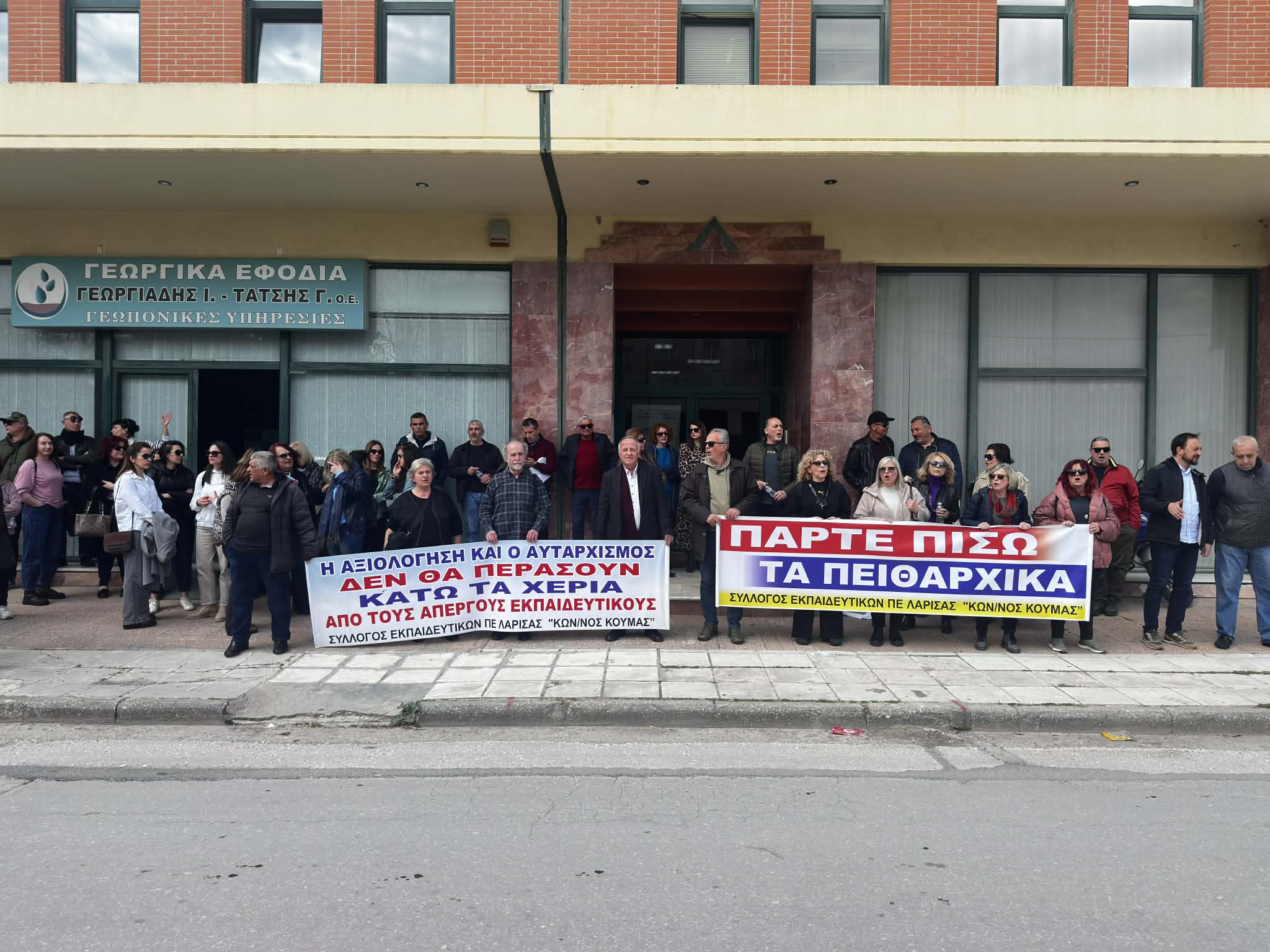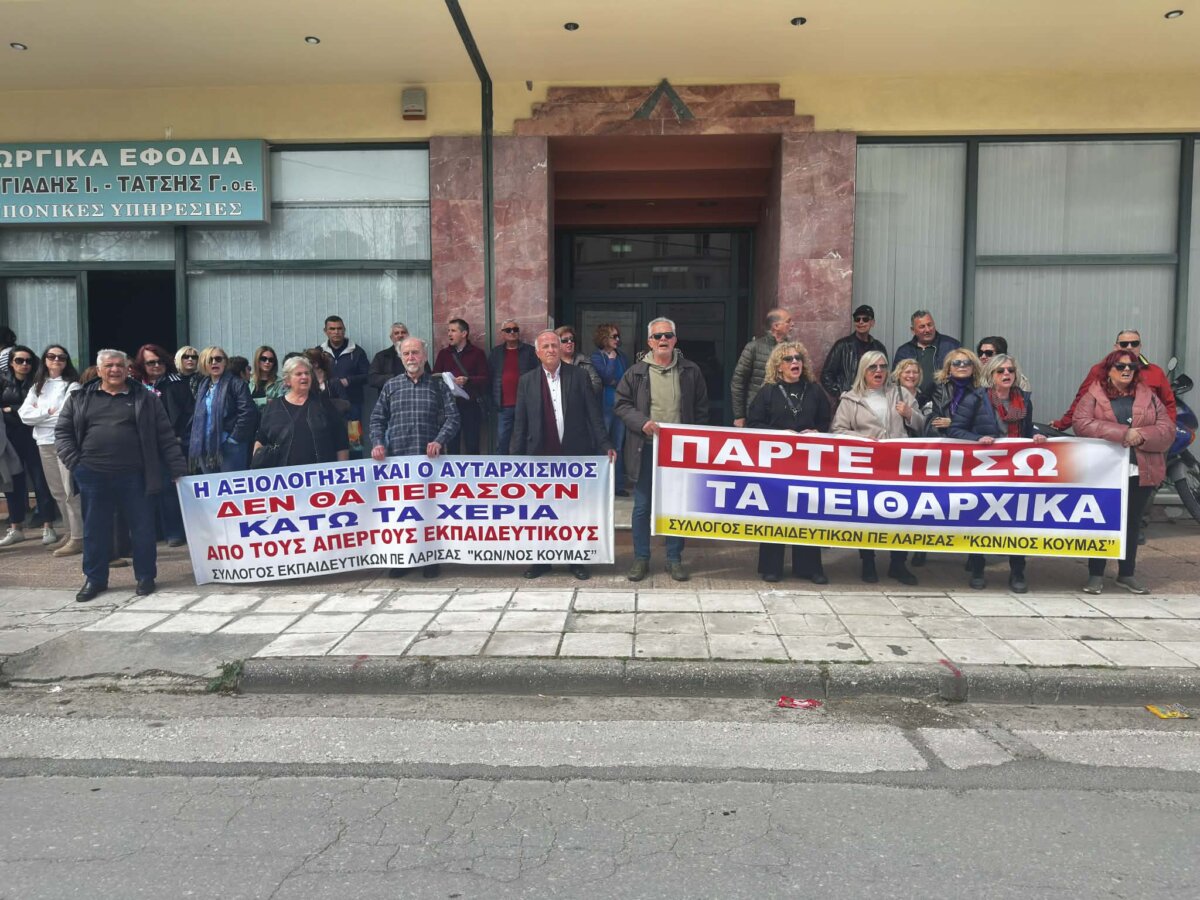 Μία ακόμη παράσταση διαμαρτυρίας, η οποία φαίνεται πως δεν θα είναι τελευταία, πραγματοποιήθηκε σήμερα το μεσημέρι στην έδρα της Διεύθυνσης Πρωτοβάθμιας Εκπαίδευσης Λάρισας με κεντρικό αίτημα «να αποσυρθούν άμεσα οι παραπομπές σε πειθαρχικό των απεργών εκπαιδευτικών».