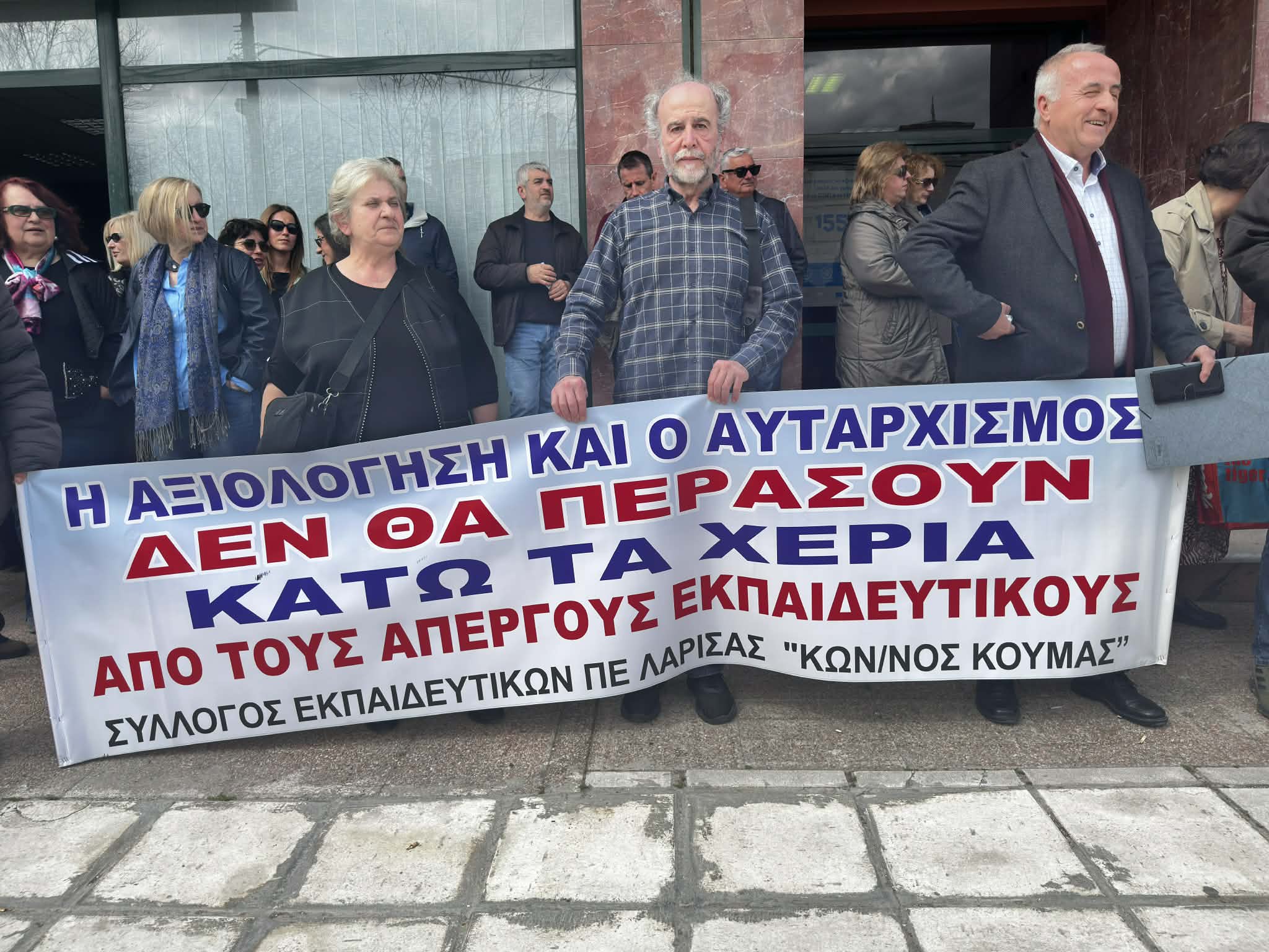 Την κινητοποίηση διοργάνωσε ο Σύλλογος Εκπαιδευτικών Πρωτοβάθμιας Εκπαίδευσης Λάρισας «Κων/νος Κούμας», ενώ συμμετείχαν η ΕΛΜΕ Λάρισας, το Εργατικό Κέντρο Λάρισας κ.α.