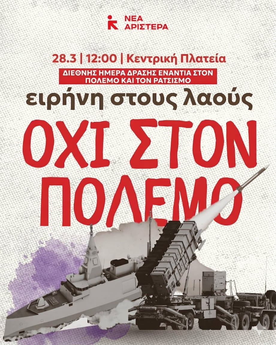 Η Νέα Αριστερά Λάρισας «καλεί στη συγκέντρωση στις 28 Μάρτη στην Κεντρική πλατεία στις 12:00.