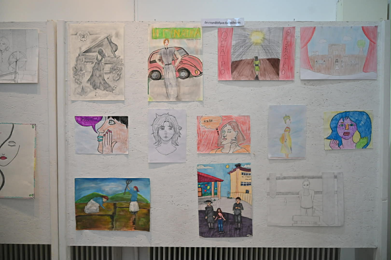 Παράλληλα, στο φουαγιέ του Χατζηγιάννειου Πνευματικού Κέντρου εκτέθηκαν τα έργα των μαθητών, τα οποία απέσπασαν θετικά σχόλια για την πρωτοτυπία, τη φαντασία και την ιστορική τους ευαισθησία.