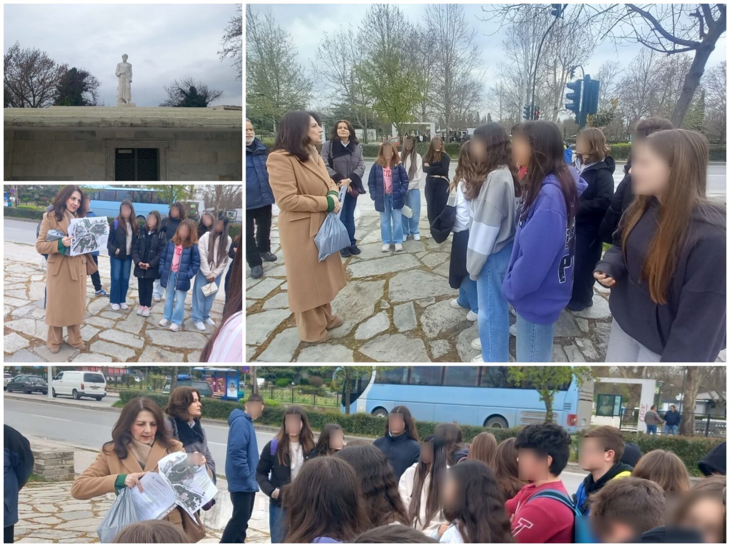 Κατά την πρώτη στάση στο Μνημείο του Ιπποκράτη, η κ. Ηλιάδη Χριστίνα-Φιλόλογος/Διευθύντρια του 4ου ΕΠΑ.Λ. Λάρισας και Μέλος του Δ.Σ. του Συλλόγου «Ο Ιπποκράτης στη Λάρισα» υποδέχθηκε τα παιδιά και τους εκπαιδευτικούς που τα συνόδευαν. Εν συνεχεία, ενημέρωσε για τη ζωή και το έργο του μεγάλου αρχαίου Έλληνα ιατρού, ο οποίος θεωρείται πατέρας της Ιατρικής και τους μίλησε για την ιστορία του μνημείου και τη σύνδεση του Ιπποκράτη με την πόλη της Λάρισας. Ευχαριστούμε την κ. Ηλιάδη για την όμορφη αυτή εμπειρία.